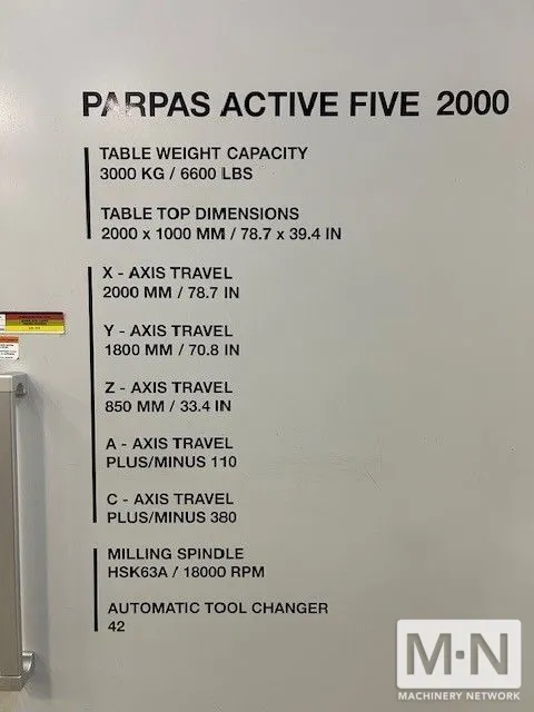 2014 PARPAS OMV ACTIVE FIVE 2000 | Machining Centers, Vertical