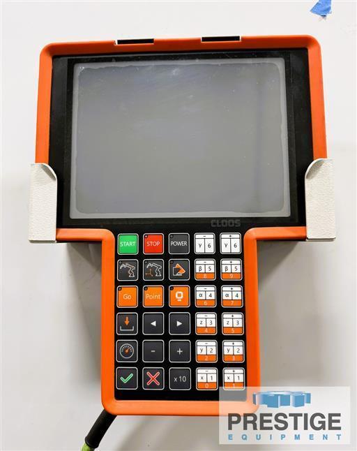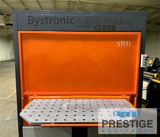 Cell Dimensions 79" Wide x 109" Deep x 80" High Total System Weight 2700 lbs Max Weight Per Station 280 lbs Connected Load Max 12KVA Robot Working Envelope 114.17" Welding Current 100% Duty Cycle 400 Amp 2 Machined Work Table Stations 27" x 55" Work Station Tables Compatible With 22mm (Bluco, Siegmund, Demmeler) Equipped With: Cloos QRC 290 6 Axis Robot Cloos QC2 Controller Unit Color Touch Screen Teach Pendant Cloos Qintron 400 Amp Power Supply Cloos Wire Feeder Auto Torch Cleaning System Air Cooled Torch |
