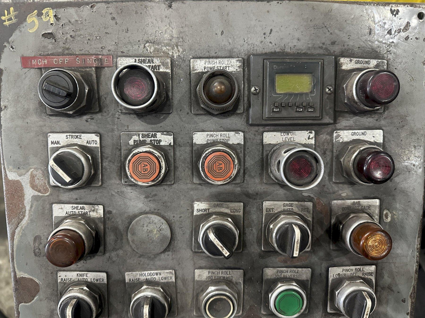 MODEL ....................... 530-2230 TONNAGE CAPACITY ............ 530 TON SHEARING CAPACITY (ROUND) ... 5-1/8" SHEARING CAPACITY (SQUARE) .. 4-1/2" AJUSTABLE LENGTH GUAGE ...... YES, POWERED MAXIMUM LENGTH OF CUT ....... 60" PASSLINE SHEARING HEIGHT .... 39" BILLET DISCHARGE SHOOT ...... YES CONTROL PEDISTAL STATION .... YES HYDRAULIC MOTOR ............. 75 HP |