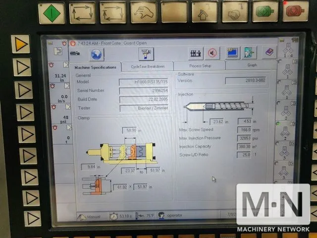 OverviewDescription1100 TON 210 OZ HUSKY MODEL H1000RS135-115 INJECTION MOLDING MACHINE MFG 2005 POLARIS CONTROL