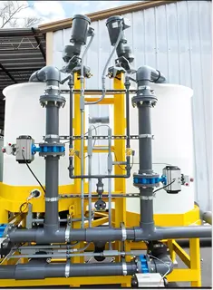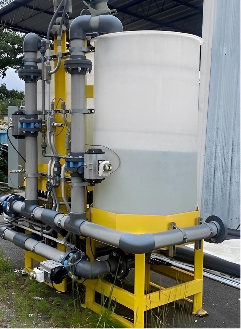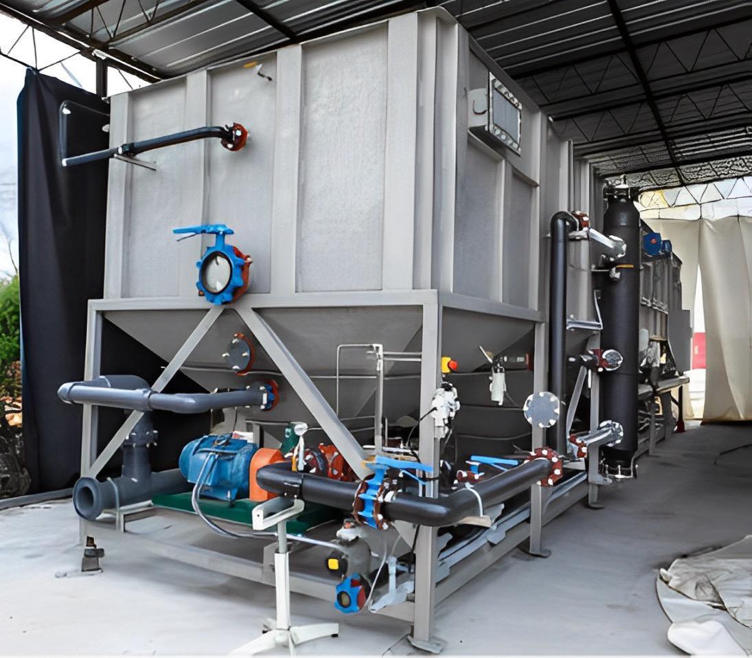 All specifications are assumed to be correct but must be confirmed by the purchasing entity.,Dissolved Air Floatation System (Qty 1) -Dimensions 34’ x 11’ x 10’ 6” -Design Flowrate: 450 GPM -304 Stainless Steel Vessel -Covered -Explosion Proof -HDPE Piping -(2) Corrosion Proof Skimmers -40 HP Explosion Proof Pump -3 HP Solids Lobe Pump -CO2 Blanket System -Automated Valve Pack All specifications are assumed to be correct but must be confirmed by the purchasing entity.,Electrocoagulation System (Qty 2) -Dimensions : 7’ 9” x 5’ x 5’ 6” -Design Flowrate: 225 GPM -Number of Electrodes: 217 -Electrodes Materials of Construction: ASTM A36 Carbon Steel -Electrodes Effective Area: 24” x 36” -Electrode Thickness: 3/16” -Electrodes Gap: 3/16” -Bus Bar Material of Construction: Aluminum -HDPE Vessel -Ports for CIP Connection -Power Supply (2) -High Output from AC to DC Power Supply -One (1) Independently controlled DC power with pulsing and polarity reversal for each EC chamber. Unit shall be enclosed in a painted cabinet. Incoming AC, 480/3/60, 200A circuit -Polarity Reversal and Pulsing -Modbus outputs to the unit mounted controller providing monitoring of volts, current, pulse, polarity reversal, fan status, temperature, and power -EMC Filter, constant current and voltage control, over current protection, short circuit protection, over temperature monitor, automatic fan control All specifications are assumed to be correct but must be confirmed by the purchasing entity.,Clean in Place (CIP) system included -The automated system allows the unattended cleaning of a single EC while the other EC continues to provide treatment. The CIP utilizes an abrading solution as opposed to harsh chemicals. All specifications are assumed to be correct but must be confirmed by the purchasing entity. |