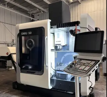 2016 DMG MORI DMU 50, 5-axis vertical machining center, used condition. Specs: X19.7", Y17.7", Z15.7", 20HP, 15000 RPM, 30 ATC, CAT-40 taper. Siemens 840D Control, Ideal for precision manufacturing and complex components. Features: