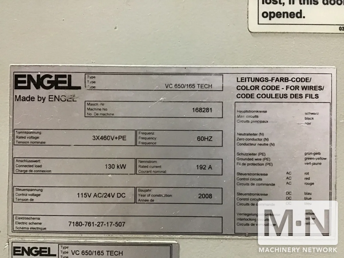 OverviewDescription165 TON 8.2 OZ ENGEL MODEL VC650/165 TECH INJECTION MOLDING MACHINE MFG 2008 CC200 CONTROL