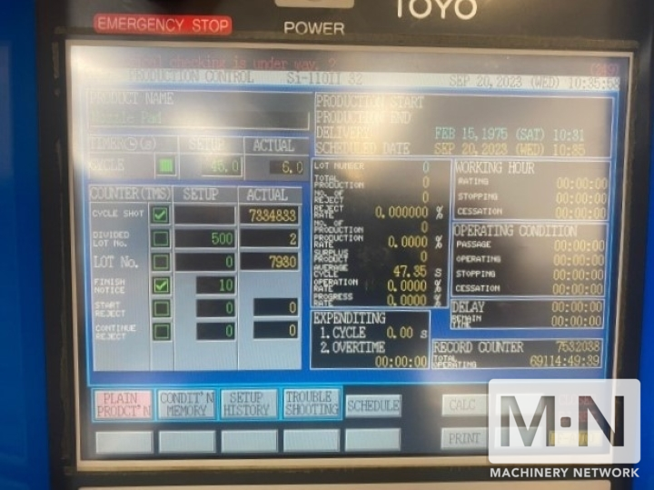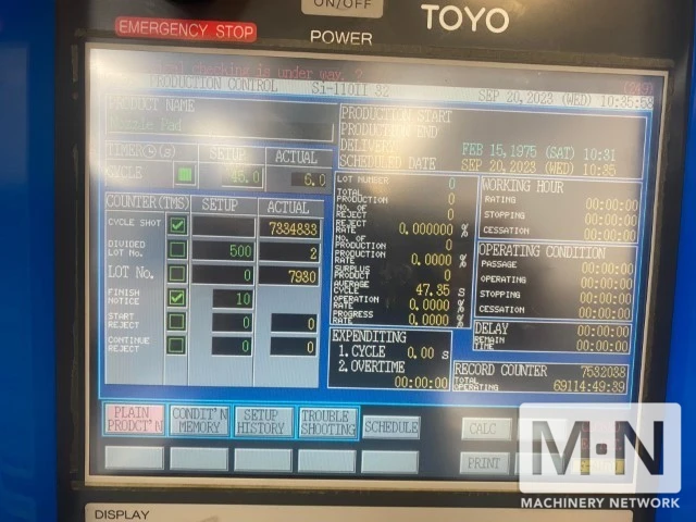 OverviewDescription110 TON 3.4 OZ TOYO MODEL Si-110II ELECTRIC INJECTION MOLDING MACHINE MFG 2003 PLCS-10 CONTROL