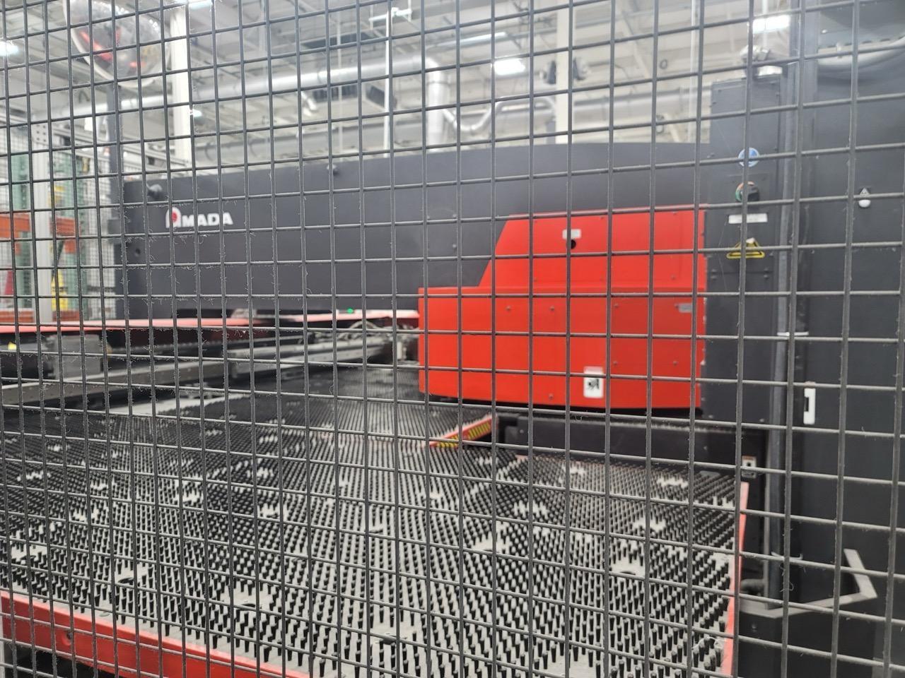 All specifications are assumed to be correct but must be confirmed by the purchasing entity.,Marking: 900HPM Punching: 350 (X), 285 (Y) Turret Rotation Speed: 30RPM Turret Feed Clearance: 0.984″ Turret Configuration: 58-Station 2 Auto-Index Auto Index Rotation Speed: 60RPM Maximum Hole Diameter: 4.5″ Pneumatic X-Gauge Block: Standard Pneumatic Clamps: 3 Standard All specifications are assumed to be correct but must be confirmed by the purchasing entity.,Program Storage: 10MB (120KB max program size) Graphic Screen: TFT 15″ PV (Power Vacuum) Slug Removal: Standard (0.5″ & 1.25″) All specifications are assumed to be correct but must be confirmed by the purchasing entity.,Power Requirement: 19KVA Operating Voltage: 200/208V, 3 Phase Operating Air Pressure: 72PSI Compressed Air Pressure: 17.65 cubic ft. per minute All specifications are assumed to be correct but must be confirmed by the purchasing entity.,Machine Dimensions: 208″ x 202″ x 86″ Machine Weight: 26,000lbs All specifications are assumed to be correct but must be confirmed by the purchasing entity. |