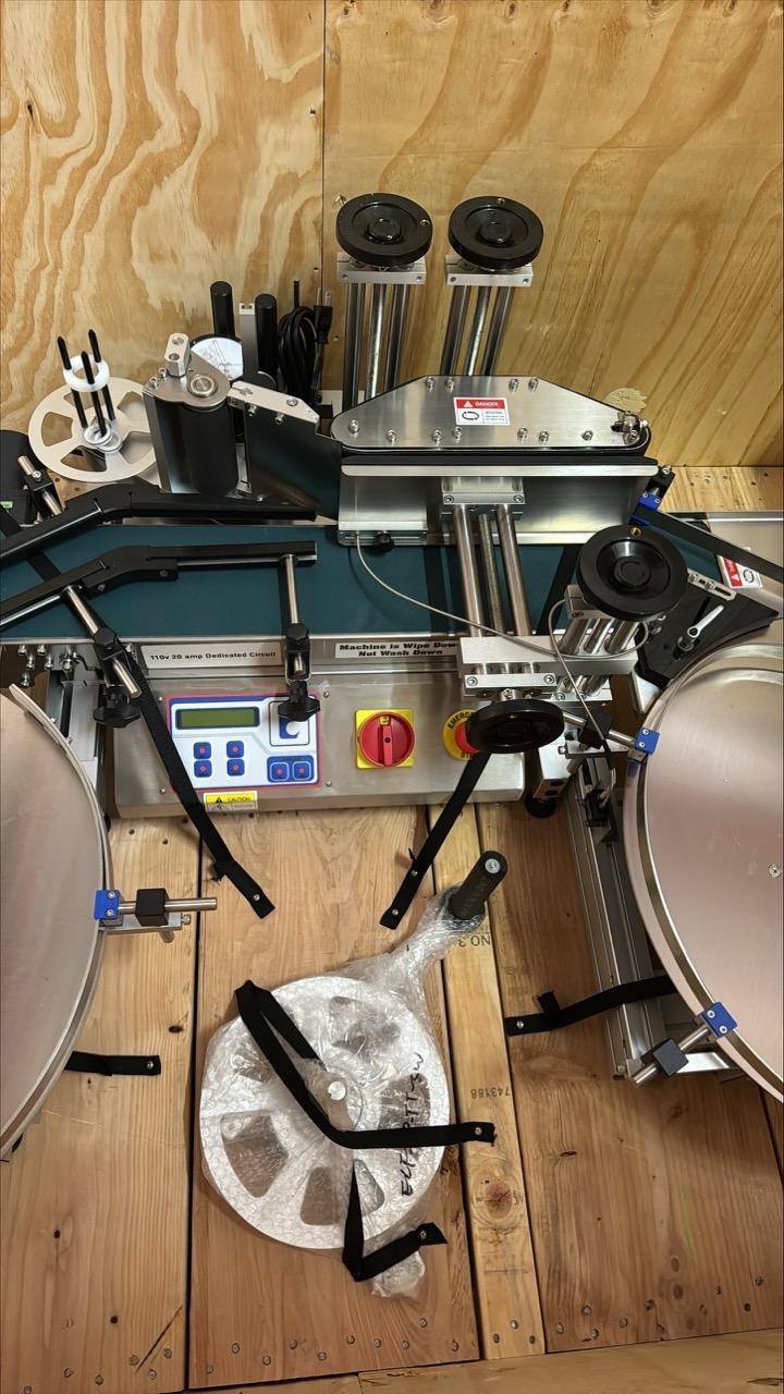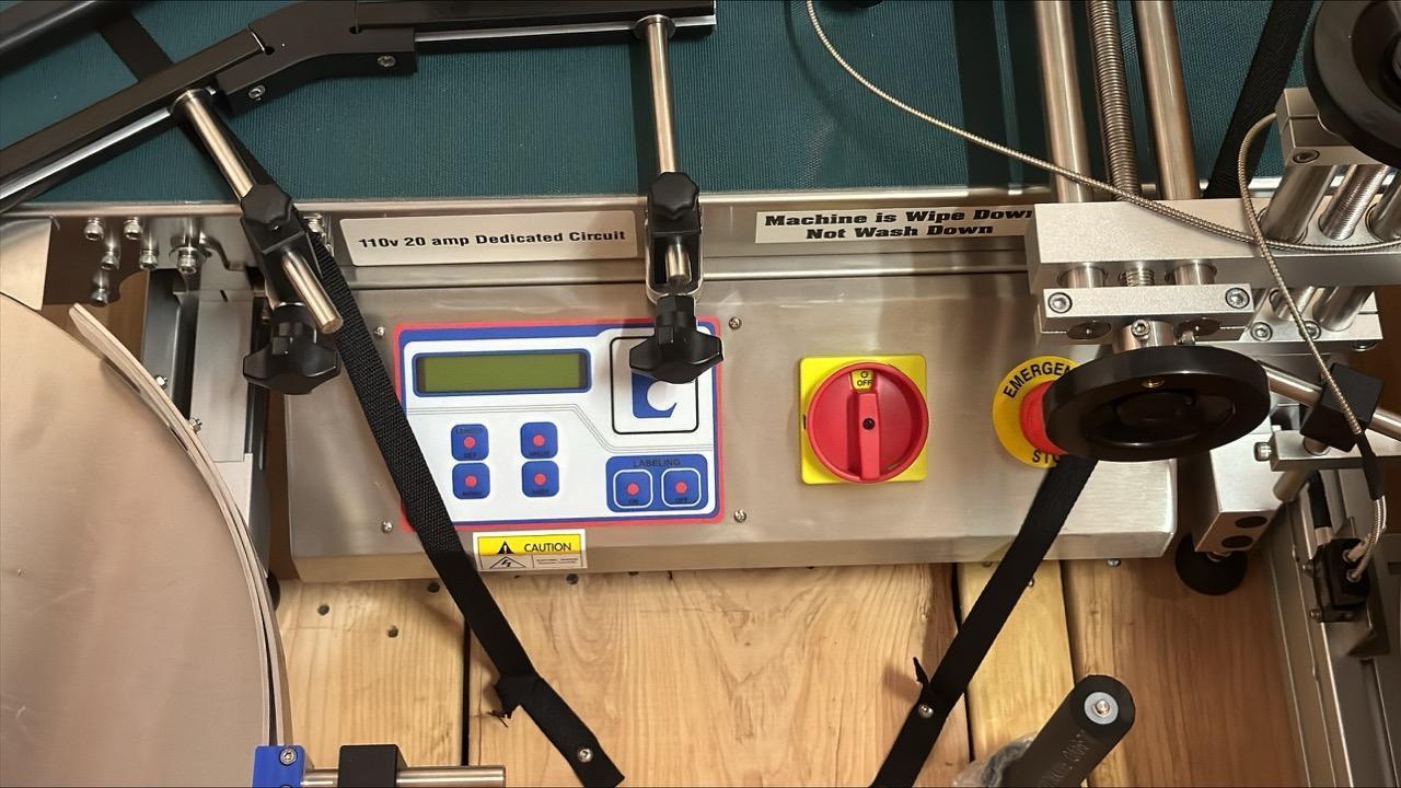 All specifications are assumed to be correct but must be confirmed by the purchasing entity.,Machine Dims: 72″ L x 36″ W x 40″ H All specifications are assumed to be correct but must be confirmed by the purchasing entity.,Apply labels to side of jars/containers All specifications are assumed to be correct but must be confirmed by the purchasing entity.,Max Dispensing Speed: 52.5′ minute All specifications are assumed to be correct but must be confirmed by the purchasing entity.,Max Conveyor Speed: 32.8′ Minute All specifications are assumed to be correct but must be confirmed by the purchasing entity.,Max Label Size: 4.75″ x 11.8″ All specifications are assumed to be correct but must be confirmed by the purchasing entity.,Max Container Width: 6.3″ All specifications are assumed to be correct but must be confirmed by the purchasing entity.,Conveyor Width: 6″ All specifications are assumed to be correct but must be confirmed by the purchasing entity.,Spool Diameter: 10″ All specifications are assumed to be correct but must be confirmed by the purchasing entity.,Inner Core: 3″ All specifications are assumed to be correct but must be confirmed by the purchasing entity.,Net Weight 165 LBS. All specifications are assumed to be correct but must be confirmed by the purchasing entity. |