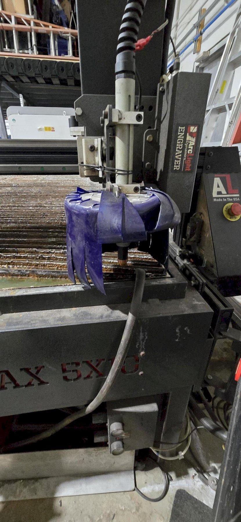 All specifications are assumed to be correct but must be confirmed by the purchasing entity.,Overall Dims: 88’wx143″Lx60″H Size at Base: 70″Wx133″L Cutting Envelope: 62″W X 124:L Cabinet: 21.5″ x 17.75″ Water Capacity 300 Gallons Weight: 2500 lbs Hypertherm powermax 65 All specifications are assumed to be correct but must be confirmed by the purchasing entity. |