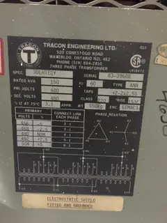 Similar Listings to - Tracon Transformer 150 KVA 480 V Primary 480 V Secondary