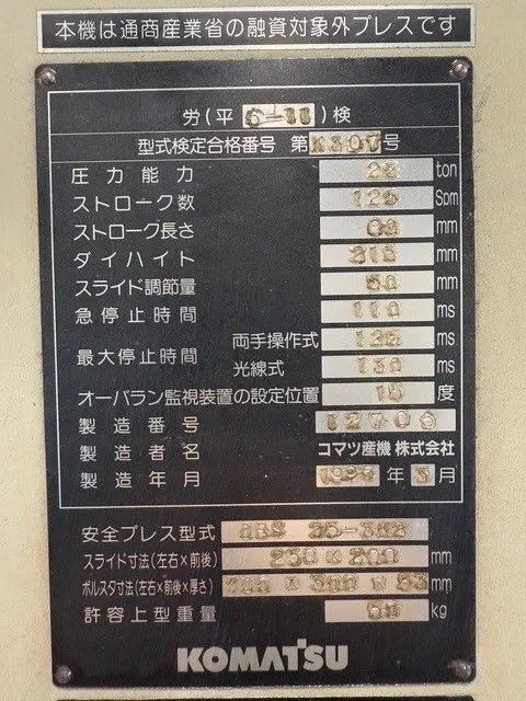 KOMATSU OBS-25 25 Ton Gap Frame Press 1995’ # 7224