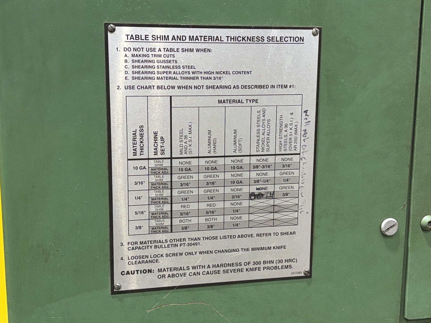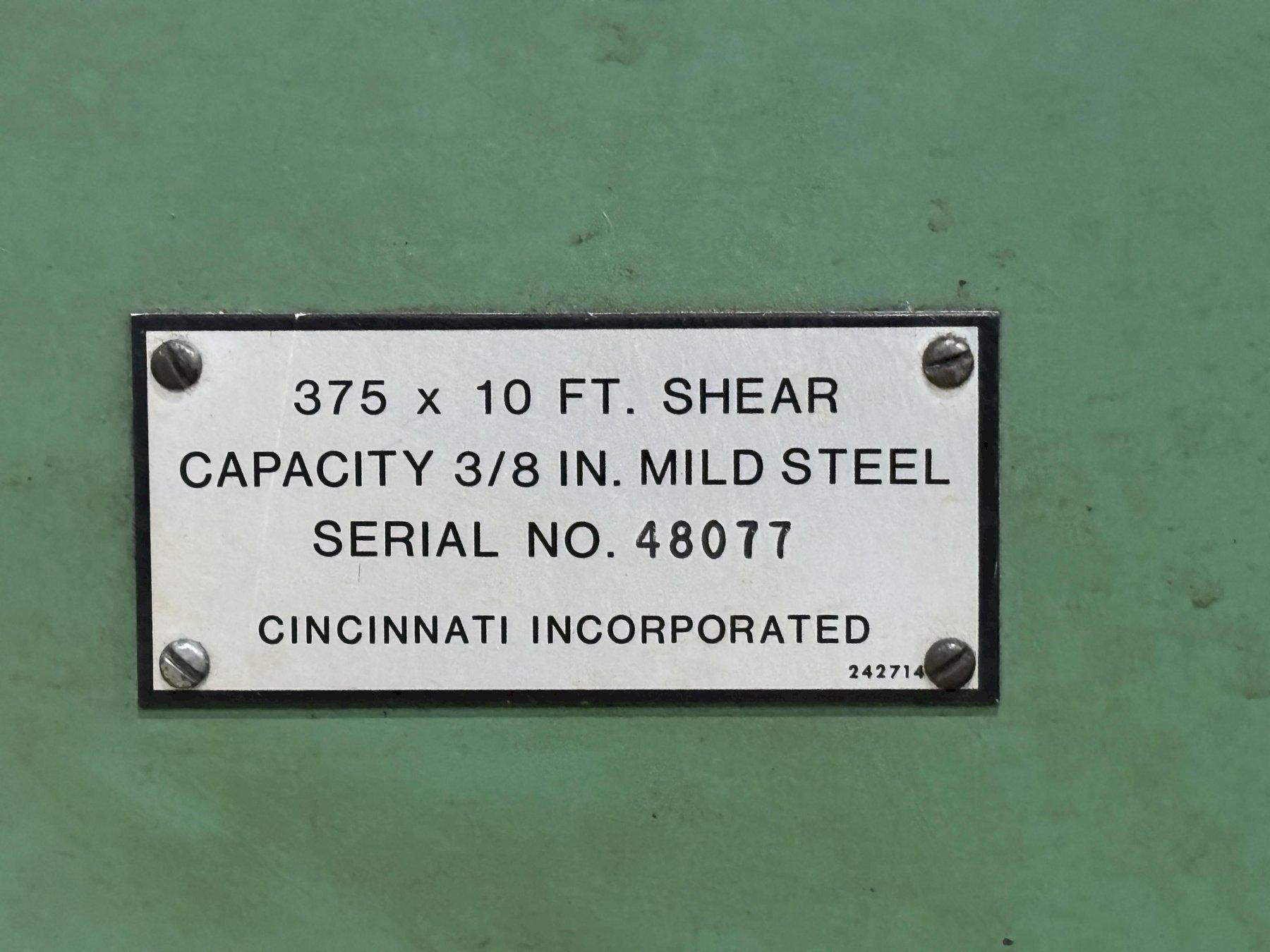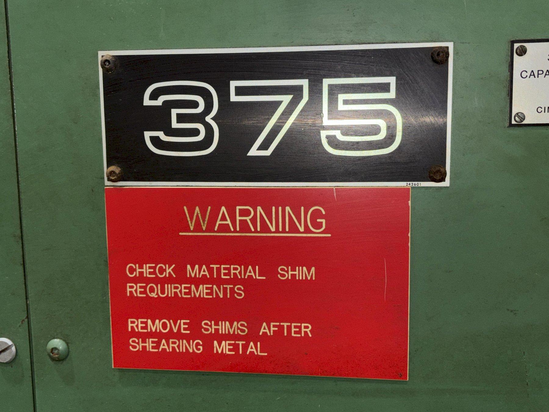 MODEL .................................. 375 X 10 HYD Capacity (mild Steel) .................. 3/8” Maximum Shearing Length ................ 122 - 3/4”