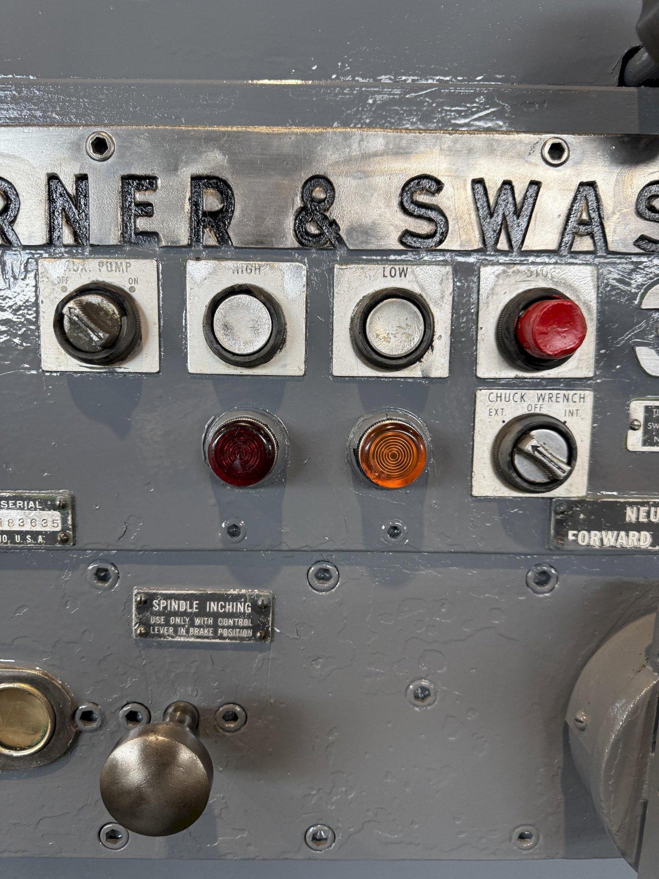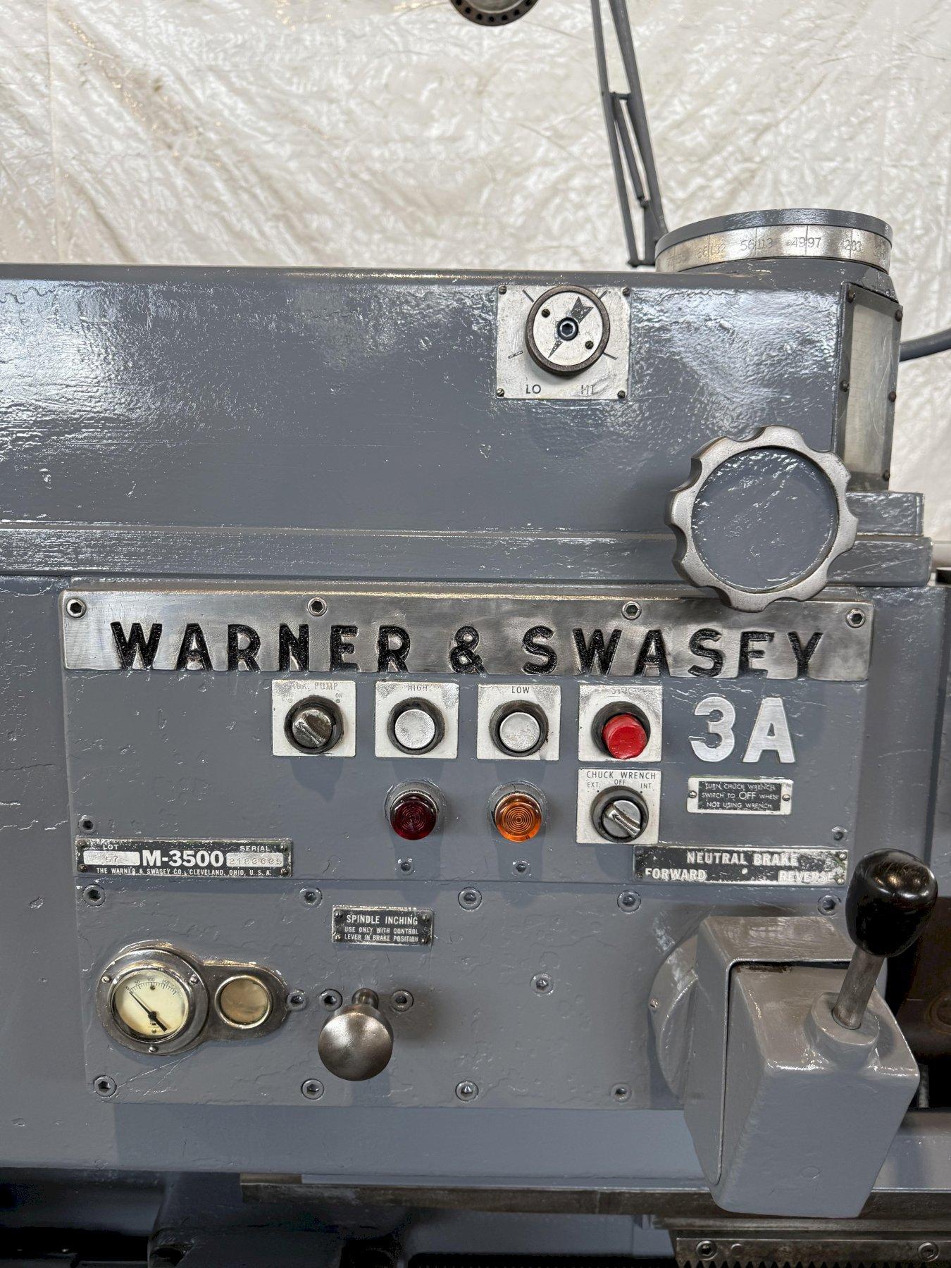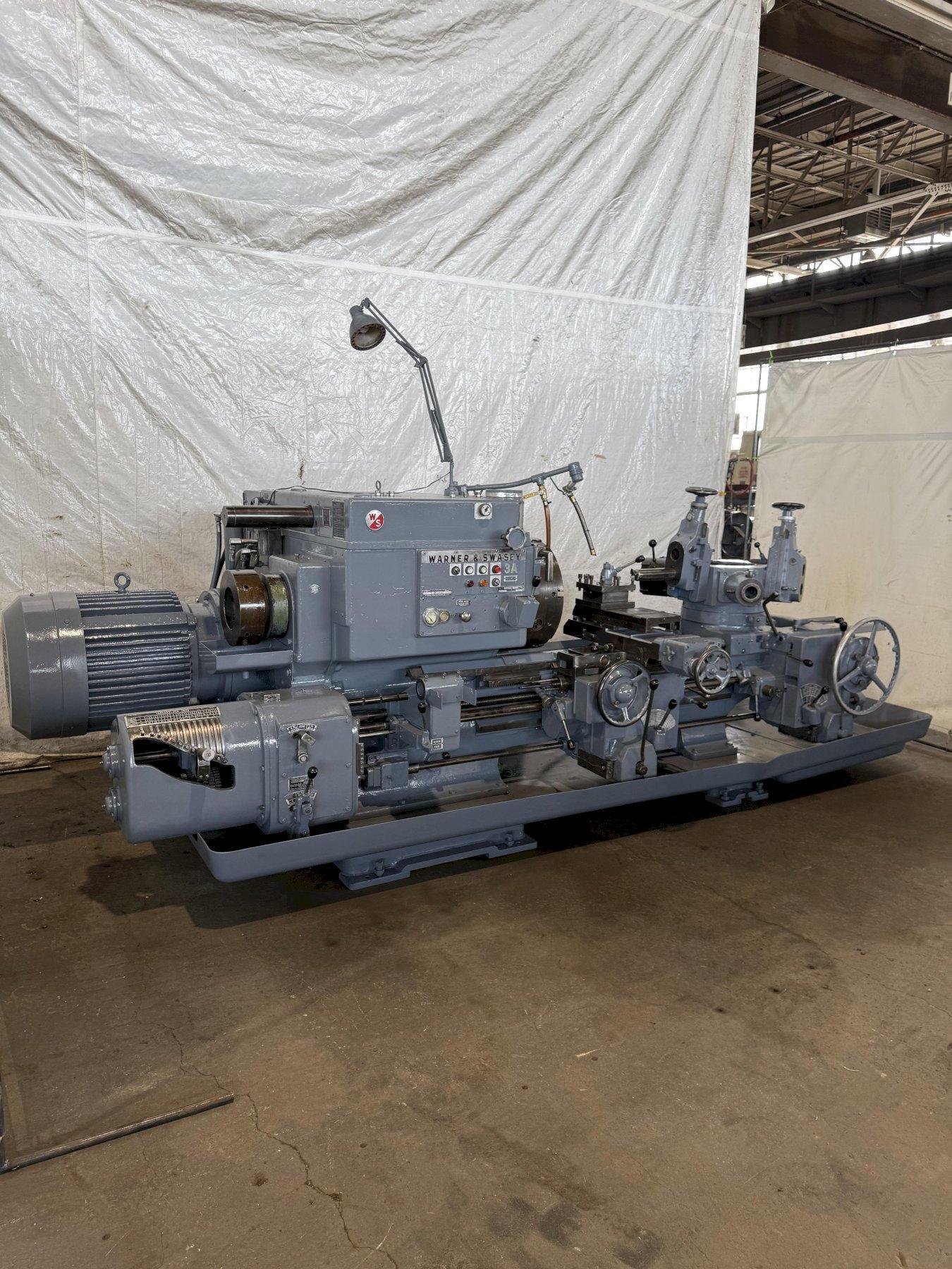 SERIAL ............................. 2183635 MODEL .............................. 3A (M-3500) SQUARE HEAD SWING OVER BED ..................... 24-1/2" SWING OVER CARRIAGE HORN ........... 18" SPINDLE NOSE TO TURRET ............. 58-3/4" SPINDLE HOLE ....................... 6-1/8" SPINDLE SPEEDS ..................... (32) 12 TO 851 RPM CHUCK .............................. 21" 3 JAW POWER CHUCK WRENCH .. YES CARRIAGE LONGITUDINAL FEEDS ........ (16) .005 TO .167 IPR CARRIAGE CROSS FEEDS ............... (16) .002 TO .082 IPR TURRET LONGITUDINAL FEEDS .......... (16) .005 TO .167 IPR ADJUSTABLE SLIDE TOOLS .. 2 FLANGE TOOL HOLDER .. 4 CHIP PAN WITH COOLANT .............. YES MAIN MOTOR ......................... 25 HORSEPOWER