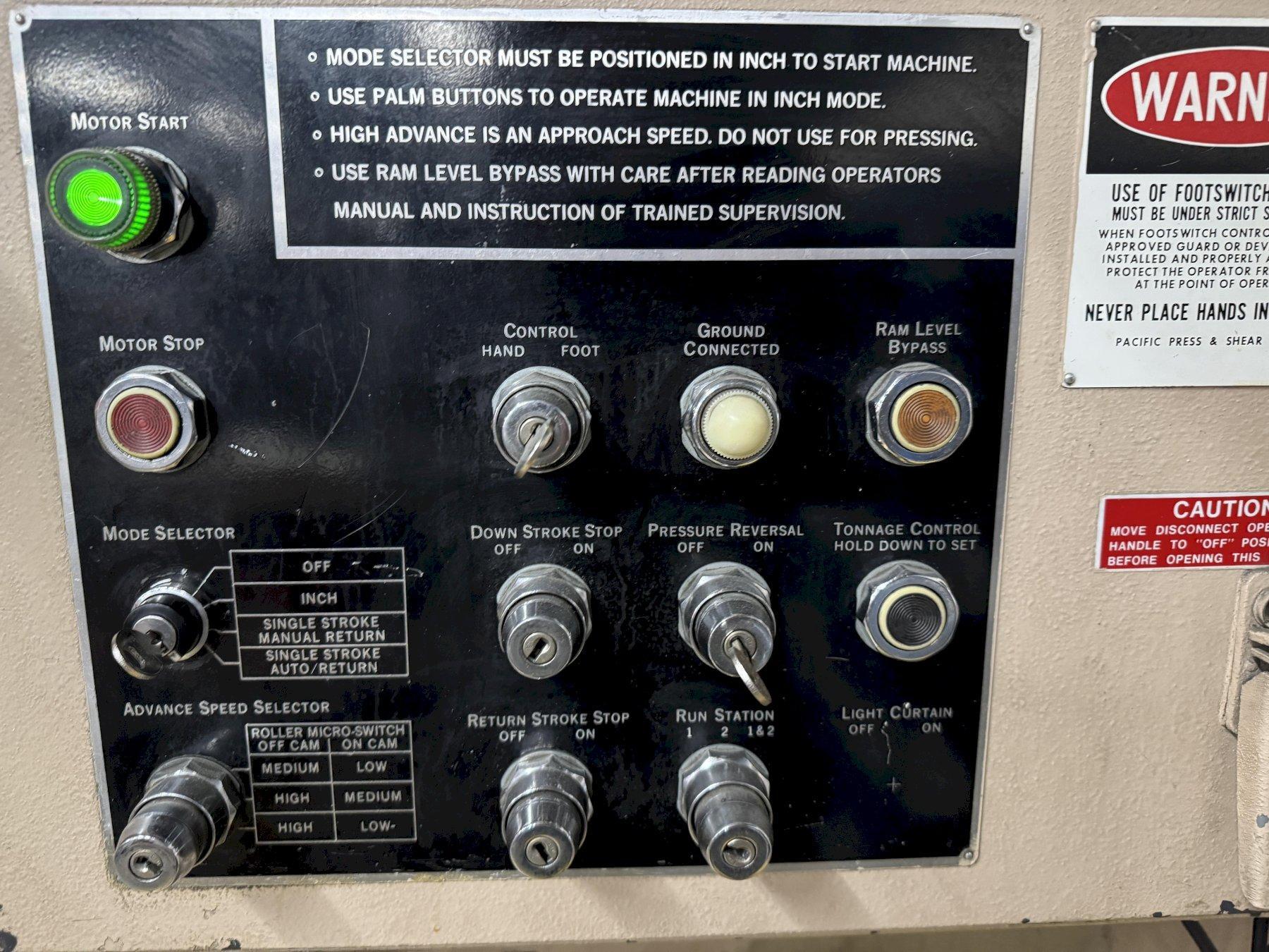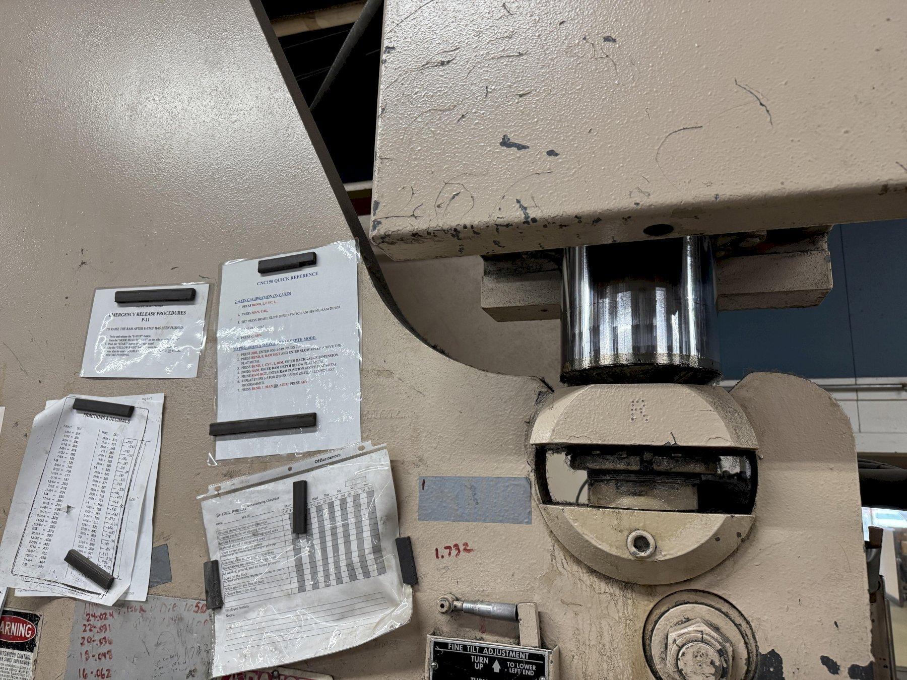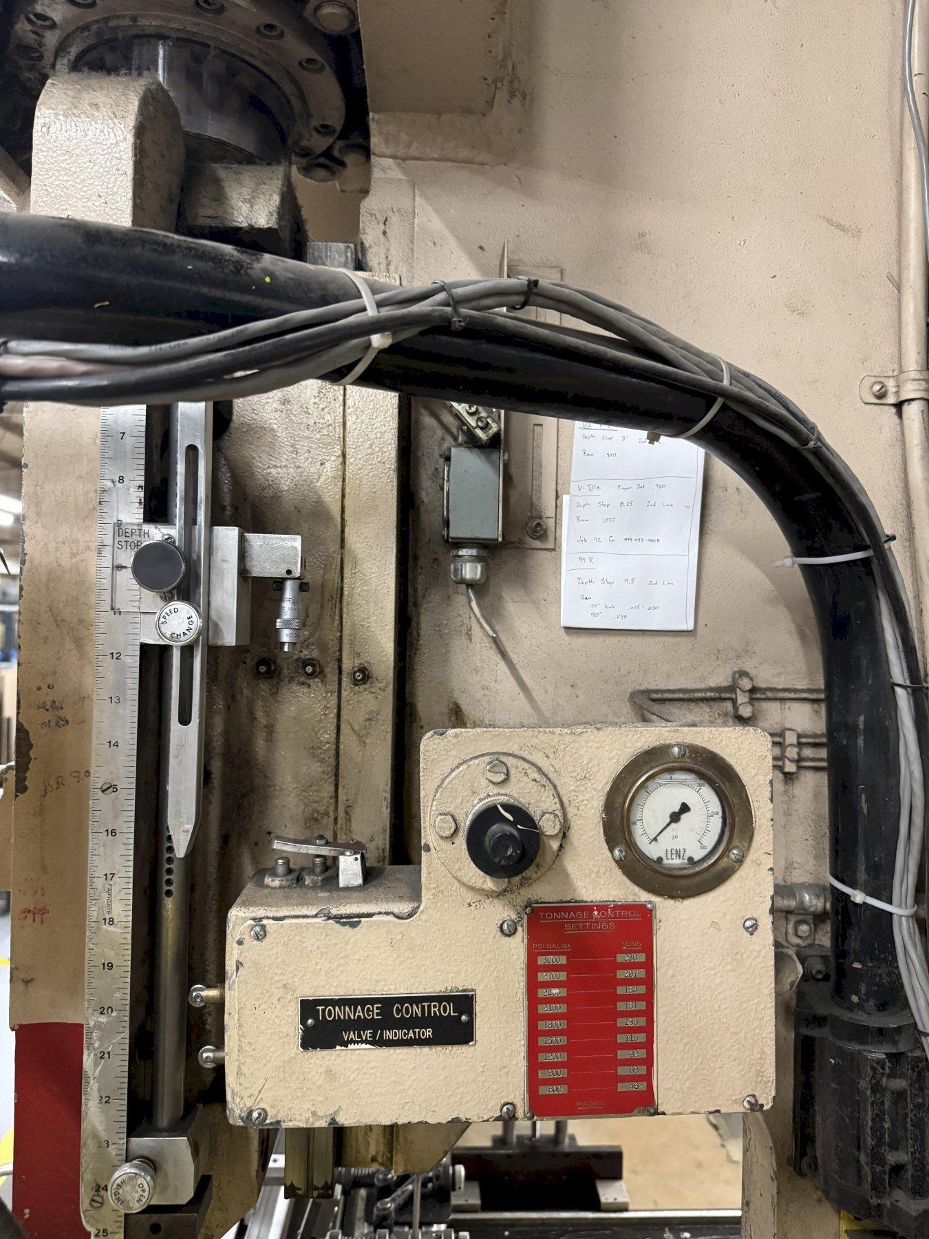 SERIAL..................... #6947 MODEL..................... #J230-1412 YEAR NEW............ 1977 CAPACITY ........................... 230 TON OVERALL LENGTH OF BED AND RAM ...... 14' DISTANCE BETWEEN HOUSINGS .......... 12'5-1/2" MAXIMUM STROKE OF RAM .............. 10" OPEN HEIGHT ........................ 15" CLOSED HEIGHT ...................... 5" DEPTH OF THROAT .................... 8" WIDTH OF BED ....................... 8" DUAL PALM BUTTONS 30 HORSEPOWER HYDRAULIC DRIVE MOTOR |