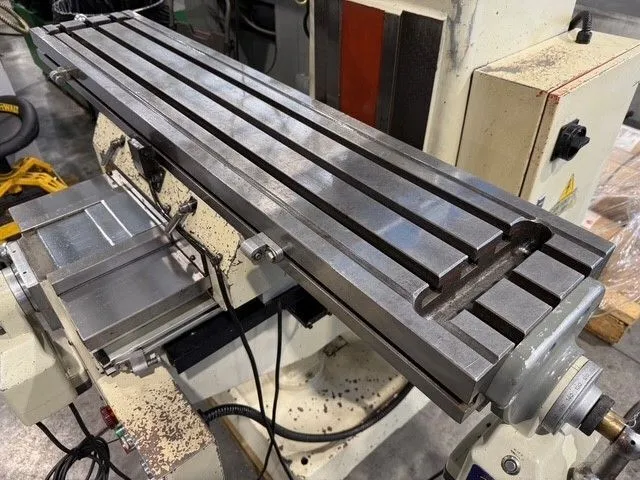 Reference # 7374 Model # VS-350B Serial # 8048 Year of manufacture- 2011’ Spindle speeds- 60 – 4200 R.P.M. Spindle Taper- R-8 Spindle travel- 5” Spindle feeds- (3) .0015, .003, .006 I.P.R. Table size- 10” x 50” X table travel- 36” X table cross travel- 16” Max weight on table- 850 Lbs. Ram adjustment- 22” Spindle nose to table-2-1/2” – 18-1/2” |