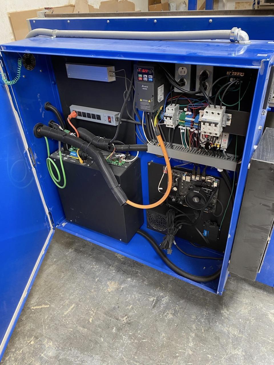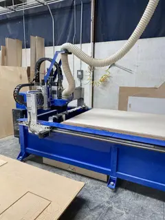 All specifications are assumed to be correct but must be confirmed by the purchasing entity.,Rapid Speeds: X Axis: 900 ipm Y Axis: 900 ipm Z Axis: 200 ipm All specifications are assumed to be correct but must be confirmed by the purchasing entity.,Cut Speeds Foam 2″ deep, 1/2 Bit: X Axis: 600 ipm Y Axis: 600 ipm Z Axis: 100 ipm All specifications are assumed to be correct but must be confirmed by the purchasing entity.,Cut Speeds Wood .500″ deep, 1/2 Bit: X Axis: 200 ipm Y Axis: 200 ipm Z Axis: 100 ipm All specifications are assumed to be correct but must be confirmed by the purchasing entity.,Resolution: X Axis: 0.001″ Y Axis: 0.001″ Z Axis: 0.00035″ All specifications are assumed to be correct but must be confirmed by the purchasing entity.,Repeatability: 0.003″ +/- Drive Mechanism: Rack and Pinion X & Y. Ballscrew on Z. Weight: Est. 2000 lbs All specifications are assumed to be correct but must be confirmed by the purchasing entity.,Equipped With: -5Hp HSD Auto tool change spindle, 220V, Single or three Phase, Italian -Delta VFD -Vacuum Table -11HP Vacuum -Remote vacuum on/off control All specifications are assumed to be correct but must be confirmed by the purchasing entity. |