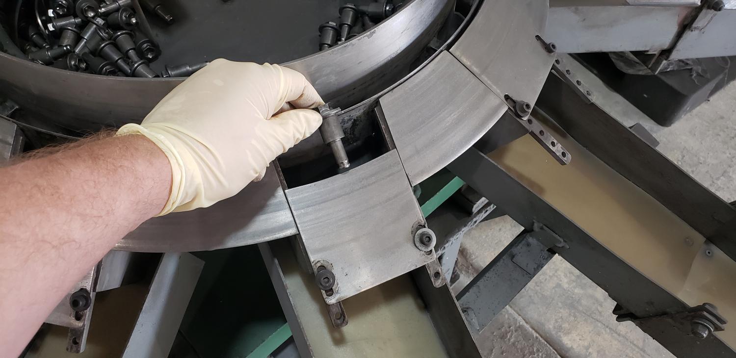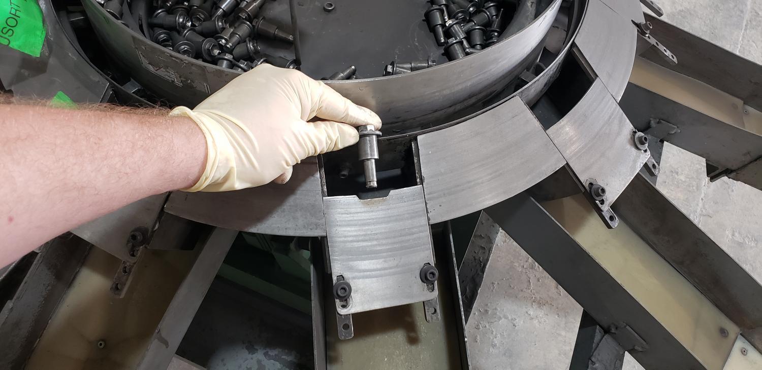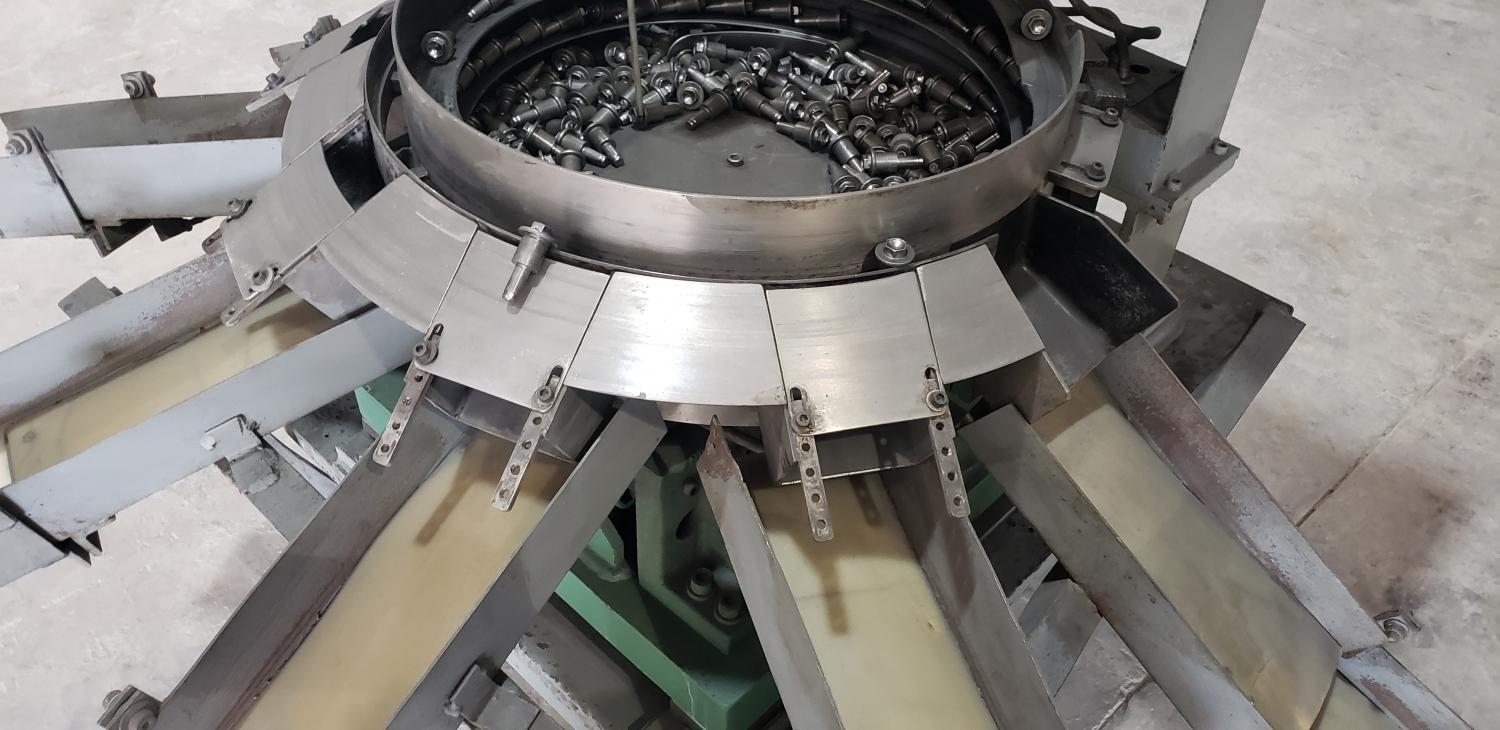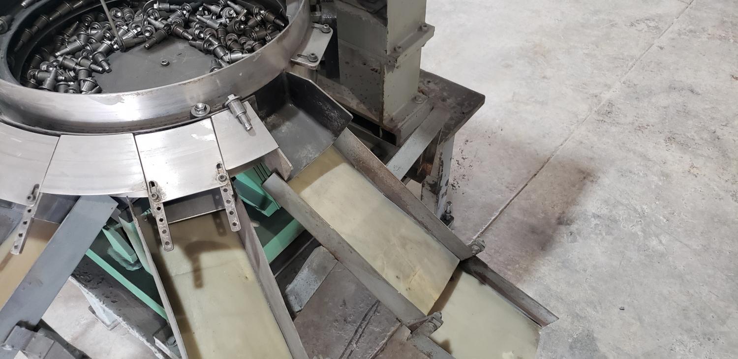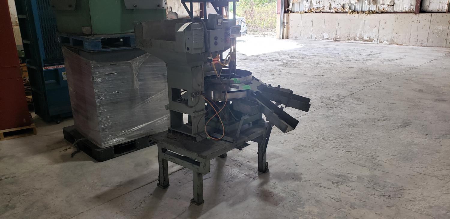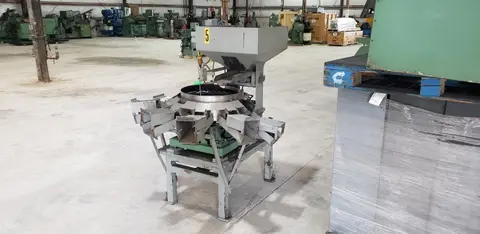 6 chutes 5 adjustable doors for part length 21″ ccw feeder bowl Tested functional Works Overhead hopper Automatic Feed switchDimensions 69 × 63 in