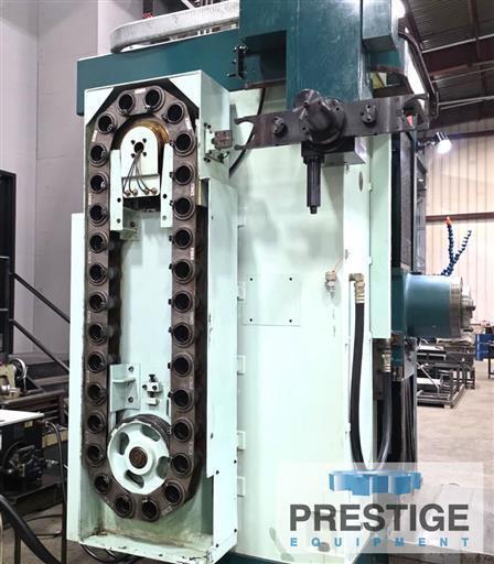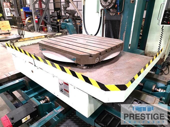 Spindle Diameter 4.33" Taper In Spindle #50 Vertical Travel, Y-Axis 47.24" Cross Travel, X-Axis 59.06" Saddle Travel, W-Axis 27.57" Spindle Travel, Z-Axis 13.78" Spindle Speeds, 2-Ranges 5-3000 RPM Rotary Table Size 37.4" x 41.34" Table Load Capacity 7,500 Lbs. Rotary Table, Indexing .001 Degrees Machine Weight 33,000 Lbs. Equipped With: Fanuc 16iMB 4-Axis CNC Control 30-Staton Automatic Tool Changer B-Axis Rotary Table Coolant System Full Chip and Splash Enclosure Chip Auger and Chip Conveyor 30 HP Spindle Motor Note: Quote Includes Disassembly and Loading on your Truck! Machine Can Be inspected Under power in North East Facility! |