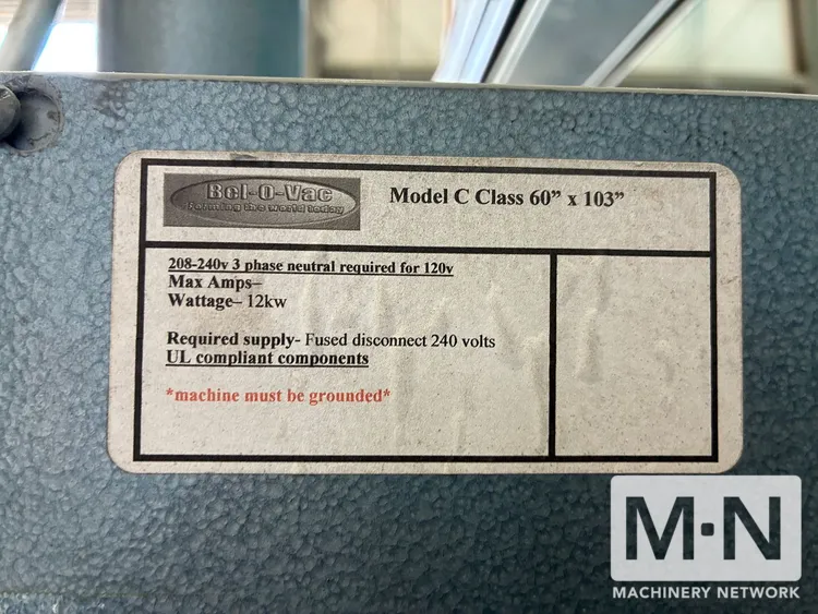 OverviewDescription53" X 103" BEL-O-VAC MODEL BV C-CLASS VACUUM FORMER MFG 2017 Depth of Draw: 21"