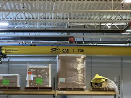 NEW ........................ 2009 CAPACITY ................... 3 TON SPAN ....................... 31'4" CLASS ...................... C CRANE ...................... SINGLE GIRDER TOP RUNNING HOIST ...................... UNDERSLUNG HEAD ROOM .................. 26" FREE STANDING ............. 32' WIDE X 80' LONG UPRIGHTS ................... 6 OVERALL HEIGHT ............. 16'9" HOIST R&M SPACEMAKER BEAM HUGGER SERIAL .................... SC60410032P25FALOF LIFT ...................... 19'8" HEIGHT UNDER BRIDGE ....... 15'4.25"" SPEED ..................... 20/3.2 FPM HOIST MOTOR ............... 5.8/.9 HP TROLLEY ................... POWERED TROLLEY SPEED ............. 65 FPM, VARIABLE TROLLEY MOTOR ............. .4 HP BRIDGE SPEED .............. 100 FPM VARIABLE BRIDGE MOTORS ............. 2 @ .5 HP CONTROL ................... REMOTE |