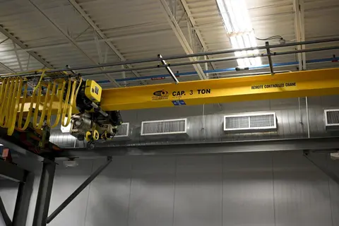 NEW ............................ 11/19/2009 CAPACITY ....................... 3 TON SPAN ........................... 21'6" CLASS .......................... C CRANE .......................... SINGLE GIRDER TOP RUNNING HOIST .......................... UNDERSLUNG HEAD ROOM ...................... 20" FREE STANDING 29' WIDE X 34'10" LONG UPRIGHTS ....................... 4 OVERALL HEIGHT ................. 15'6" HOIST R&M SPACEMAKER BEAM HUGGER LIFT ........................... 19'8" HEIGHT UNDER BRIDGE ............ 14'3.25" SPEED .......................... 20/3.3 FPM HOIST MOTOR .................... 5.8/.9 HP TROLLEY ........................ POWERED TROLLEY SPEED .................. 65 FPM, VARIABLE TROLLEY MOTOR .................. .4 HP BRIDGE SPEED ................... 100 FPM VARIABLE BRIDGE MOTORS .................. 2 @ .5 HP CONTROL ........................ REMOTE |