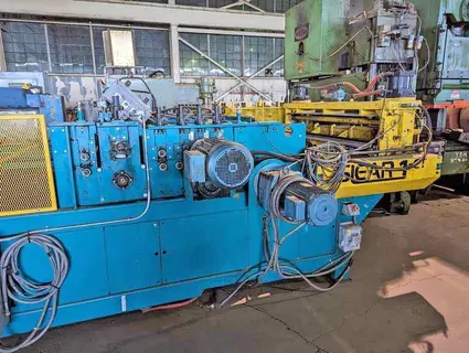-Slear Unit: Powered Entry Pinch Rolls Slitter Head with Hub Type Tooling (5" Diameter Arbor) Fifteen (15) Slitter Knives Powered Pinch Rolls #2 Flattener with Six (6) Work Rolls in a 3/3 Configuration Powered Exit Pinch Rolls Down Cut Shear on Traversing Track (Single Rake Blade) One (1) Spare Set of Shear Blades