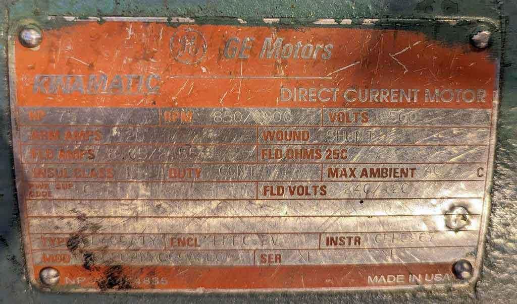 -75 HP DC Main Motor, 850/1900 RPM, 500 V, w/Blower