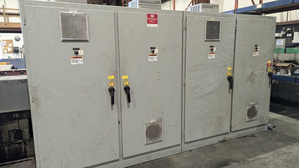 -Main Operators Control Panel: with (2) Video Screens attached to Mill by Pendant Arm -Main Control Cabinet: Mentor II Digital DC Drives AC Drives Overall Size: 156" L x 30" W x 90" High
