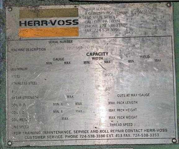 60" x 7.00" x 50,000# Cincinnati/Herr Voss Slitting Line