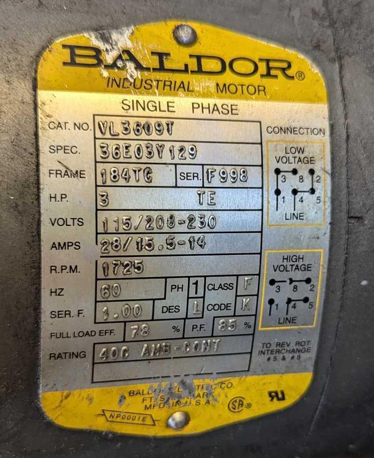 3 HP, 1725 RPM, 115/208-230 V