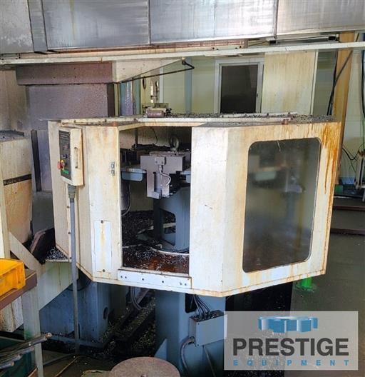 Table Diameter 98.43" Maximum Swing 137.8" Height Under Rail 80.7" X-Axis Travel of Ram 114.17" Z-Axis Ram Stroke 47.24" Ram Cross Section, Square 9.44" x 9.44" Table Speeds, Max 130 RPM Table Table Capacity 25 TON Table Motor 60 HP / 73 HP Machine Footprint 437" x 347" Machine Height 315" Machine Weight, Approx. 165,346 lbs Equipped With: Fanuc 31i-A CNC Control 12-Position Automatic Tool Changer 98.43" T-Slotted Table w/ 4-Top Jaws Through Spindle & Flood Coolant Fanuc Servo Motors & Drives on All Axis Chip Conveyor 60/73 HP Fanuc AC Digital Spindle Drive Motor |