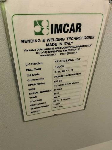 SERIAL ............ B4763 MODEL ...... 4RH.PBS.CNC10/7 YEAR NEW ...... 2015 4 ROLLS ...... YES CAPACITY .... 5/16" LENGHT OF ROLLS ..... 146" DIAMETER OF TOP ROLL .... 10.6" DIAMETER OF LATERAL ROLLS ... 9.5" ROLLING SPEED ..... VARIABLE CONTROL ...............CNC HARDEN ROLLS ...... YES DROP END ... HYDRAULIC CONTROLS CONSOLE ... PORTABLE ON WHEELS HYDRAULIC DRIVE MOTOR .... 10 HORSEPOWER CONDITION... *** GOVERNMENT SURPLUS STORAGE HARDLY USED** |