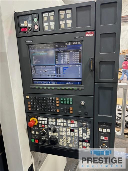 Maximum Workpiece Swing 36.2" Maximum Swing Over Cross Slide 36.2" Maximum Machining Length 75.6" Main Spindle Speed 2400 RPM Main Spindle Bore 4.7" Main Spindle Nose A2-11 Main Motor 50 HP/40 HP Sub-Spindle Speed 2400 RPM Sub-Spindle Bore 4.7" Sub-Spindle Motor 50 HP/40 HP X-Axis Travel 40.9" Y-Axis Travel +/-10" Z-Axis Travel 76.4" Main Milling Spindle 8,000 RPM Main Milling Spindle Motor 40 HP/30 HP Spindle Taper C8 C-Axis Indexing Main Spindle .001 Deg. C-Axis Indexing Sub-Spindle .001 Deg. B-Axis 230 Deg. Approximate Machine Weight 74,800 Lbs. Equipped With: MORI MSX-711 III CNC Control 18" 3-Jaw Chuck on Main Spindle 15.74" 4-Jaw on Sub Spindle 10-Station Lower Turret with Milling High Pressure Thru Spindle Coolant B-Axis Milling Spindle 80-Position Automatic Tool Changer Chip Conveyor NOTE: Inspect In Plant Under Power |
