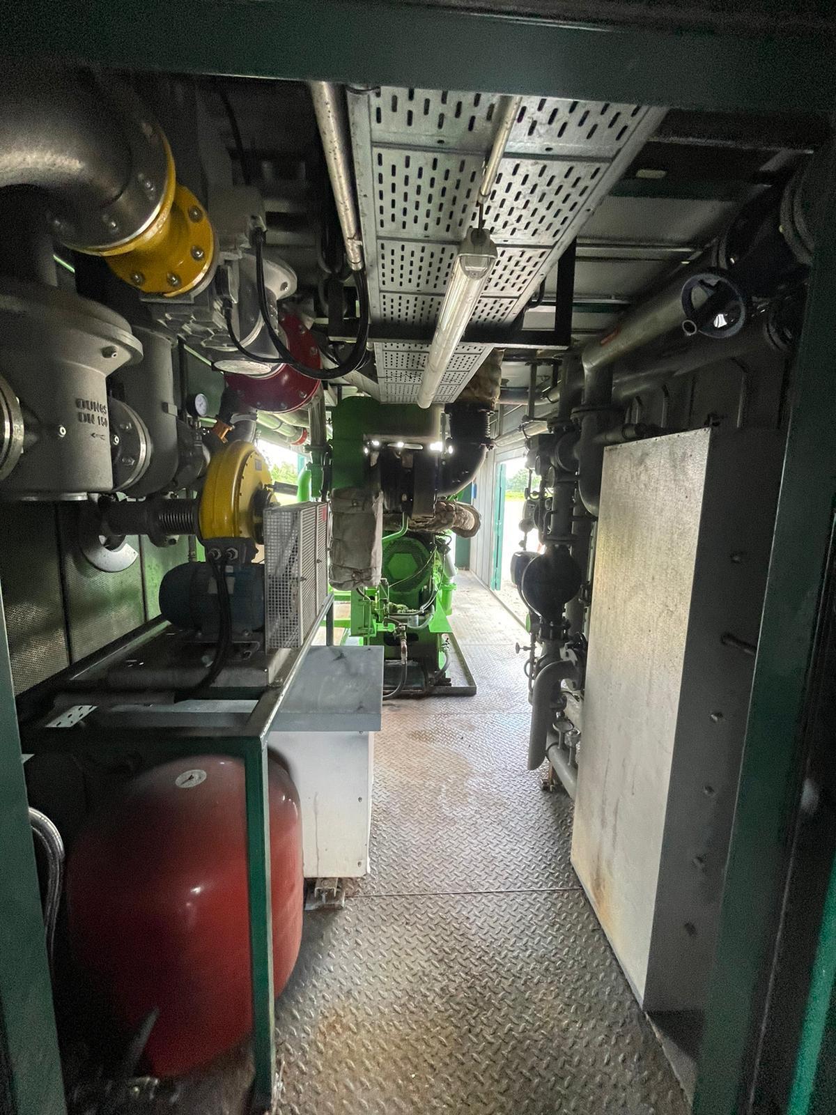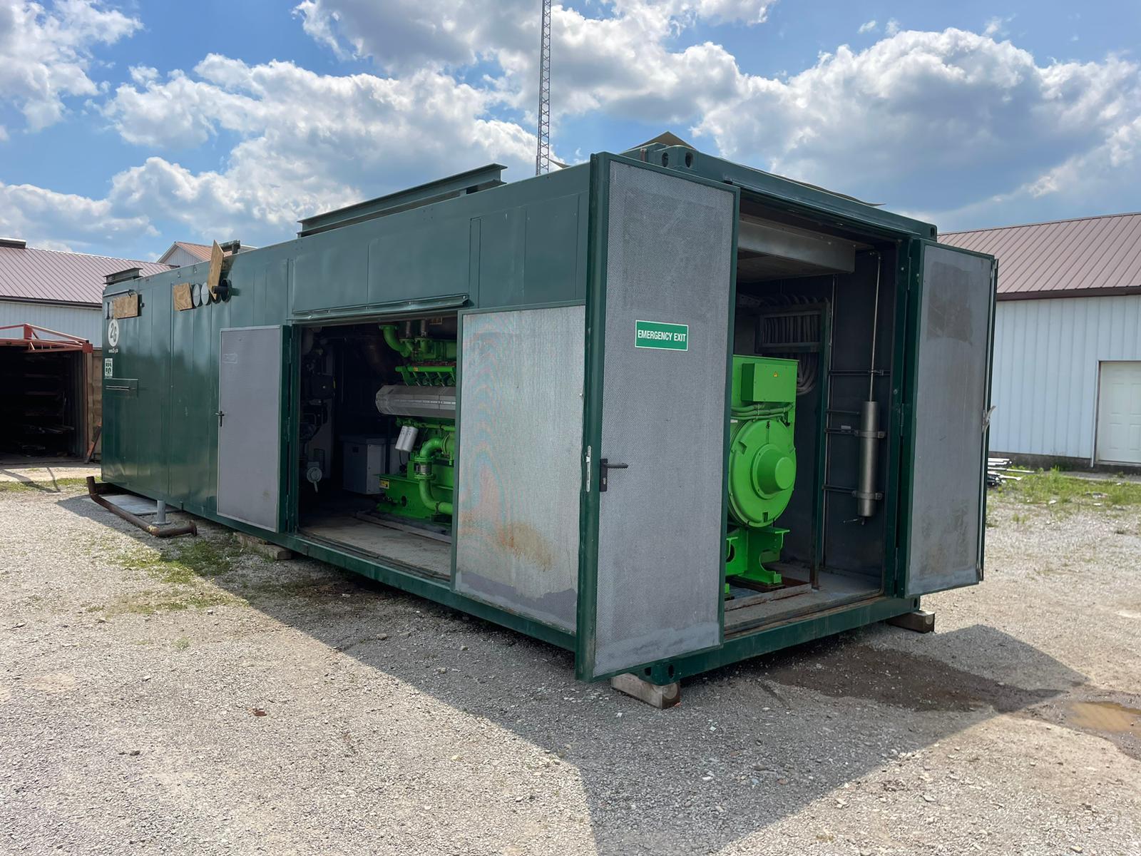 1060 KW Jenbacher JMS320GS Natural Gas Generator Set, Year 2013, 1800 rpm, 3 Phase, 60 HZ, 480 Volt or 600 Volt, 60 HZ. Very versatile package that can operate as CHP (Combined Heat and Power) or Straight Electrical Power, Dual Fuel Natural Gas or Biogas and is presently running on Natural Gas, GE Touch Screen and Monitoring Control System, Complete Cooling System, Exhaust, Pumps, Circulating Fans and much more. 40 FT Super Sound Attenuated Factory Enclosure, 9100 hrs, maintenance service upgrade completed (April 2025). Lots of equipment included with this CHP Power Plant |