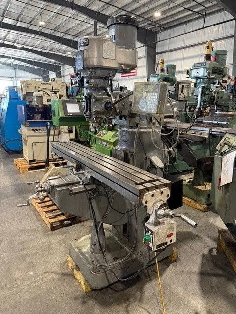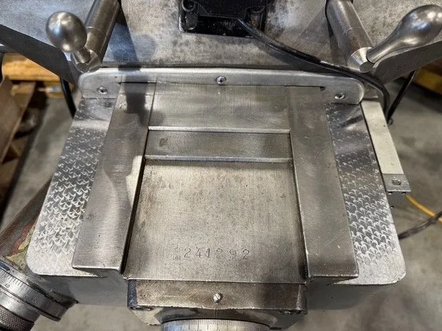 Reference # 7528 Model # Series 1 Custom Serial # 241292 Year of manufacture- 1985’ Table working surface- 9“ x 60” Number of t-slots- 3 Ranges- Longitudinal- 44” Cross- 12” Vertical, knee- 16” Quill-5” Maximum/Minimum distance, spindle nose to top of table- 18.5"/2.5" Maximum/Minimum distance, centerline of spindle to face of column- 18.75"/6.75" Ram travel- 12” Head tilt, left & right- 90 degrees Head tilt, front to rear, each way- 45 degrees Turret rotation- 360 degrees (3) Power quill feeds- - .0015, .003, .006 I.P.R. Infinitely variable spindle speeds, two ranges- 60-4,200 R.P.M Spindle taper- R-8 Maximum collet capacity- ¾” |