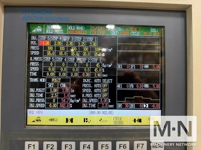 OverviewDescription1150 TON 186 OZ HYUNDAI MODEL EDIS-1150DL HYBRID INJECTION MOLDING MACHINE MFG 2014 Core Pull 1 on fixed and 1 on moving platen