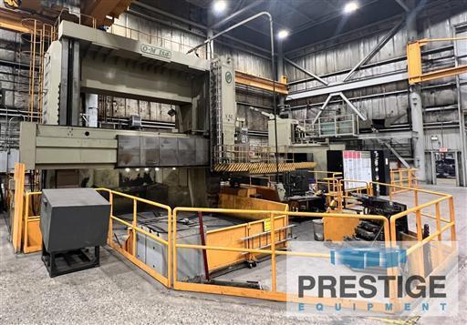 Table Diameter 216.53" Maximum Turning Diameter 236.22" Maximum Turning Height 145.66" Horizontal Travel of Rail Head 175.19" Vertical Travel of Cross Rail 125.98" Ram Stroke 82.67" Ram Cross Section 11.02" x 11.02" Table Speed (3- Ranges) .3-45 RPM Table T-Slots (Nominal)................ 1.65" 1.65" Table Weight Capacity 132,277 Lbs Table Motor 80 HP / 100 HP Equipped With: Fanuc 18-TB CNC Control Dual Operator Controls T-Slotted Table with (4) Face Plate Type Jaws Vertical Ram with Tool Block Holder Thread Cutting Cycle Retract Constant Surface Speed Control Inch / Metric Conversion Chamfering / Corner Rounding Tool Nose Radius Compensation Tool Geometry / Wear Compensation Stored Pitch Error Compensation Independent Operator Platform and Lift Steel Sliding Way Covers 100 HP Table Drive NOTE: Excellent Condition, Inspect Under Power in Turbine Mfg Facility |