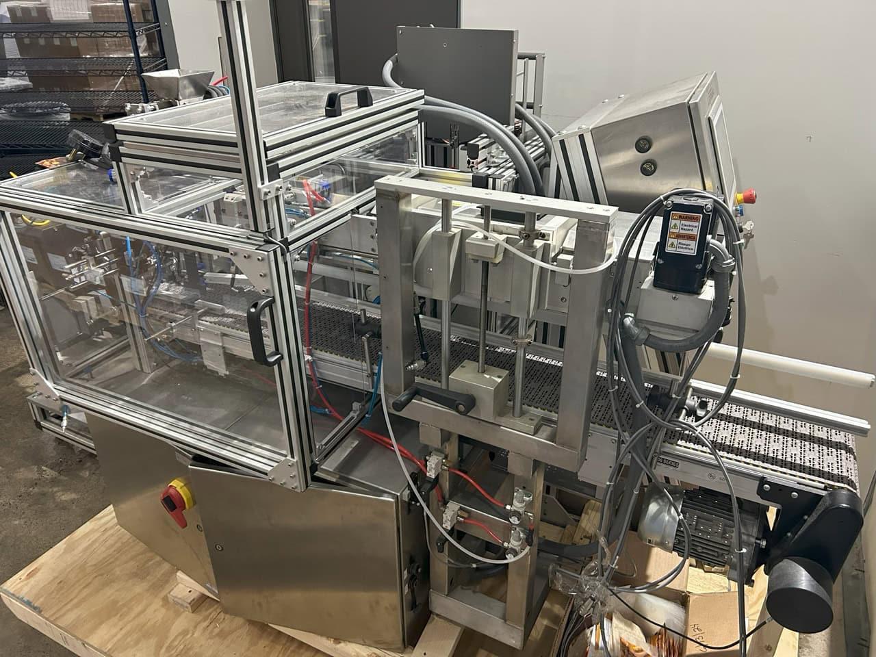 All specifications are assumed to be correct but must be confirmed by the purchasing entity.,Maximum bag size: 8” x 12” Target speed: 20-25 bags per minute 220 volts/60 Hz/20 amps All specifications are assumed to be correct but must be confirmed by the purchasing entity.,Previously set up for the followed sized zipper-closure, stand up pouches: “A” – 4.70” wide x 7.40” long with a 2.00” gusset. “B” – 5.30” wide x 8.25” long with a 2.50” gusset. “C” – 5.50” wide x 8.90” long with a 2.00” gusset. “D” – 5.75” wide x 9.90” long with a 2.50” gusset. All specifications are assumed to be correct but must be confirmed by the purchasing entity.,*year estimated based on original oem quotation All specifications are assumed to be correct but must be confirmed by the purchasing entity. |