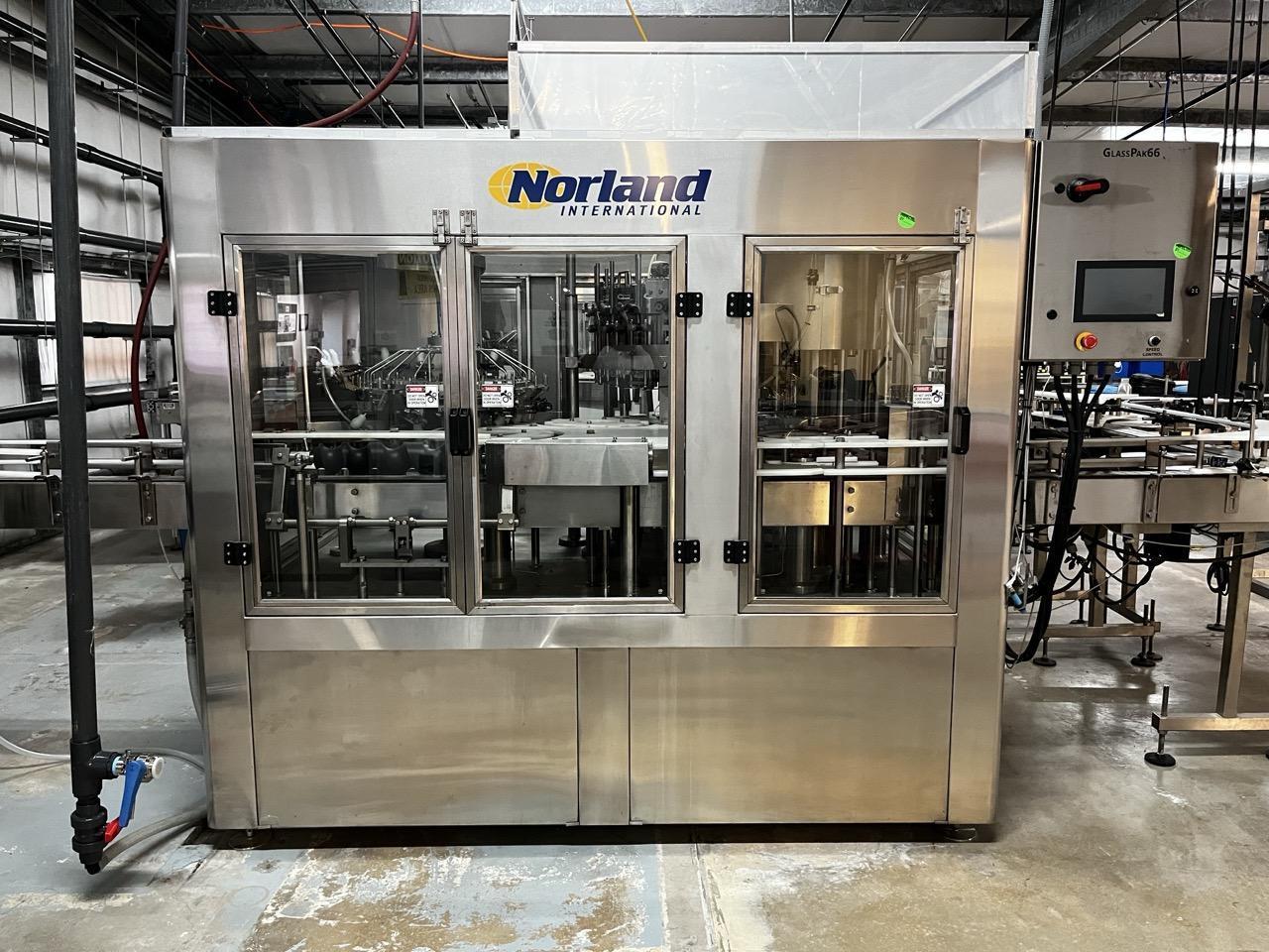 Norland International Complete line with (2) GlassPak66 Monoblock Systems (16oz and 25 Oz) for Glass or Aluminum with Fluid Solutions 3 Head ROPP Capper, 2020: