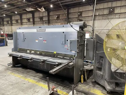 All specifications are assumed to be correct but must be confirmed by the purchasing entity.,Table Size: Length: 15 feet Width: 25 ¾ ” Weight: Approximately 21,000 lbs Voltage Options: 230V, 460V, or 575V (three-phase power) All specifications are assumed to be correct but must be confirmed by the purchasing entity.,Equipped With: PRECISION guillotine drive system QUICK-CHANGE blade gap adjustment PROGRAMMABLE back gauge with multi-job functionality OSHA-COMPLAIANT safety features HEAVY-DUTY construction for long-term reliability All specifications are assumed to be correct but must be confirmed by the purchasing entity. |