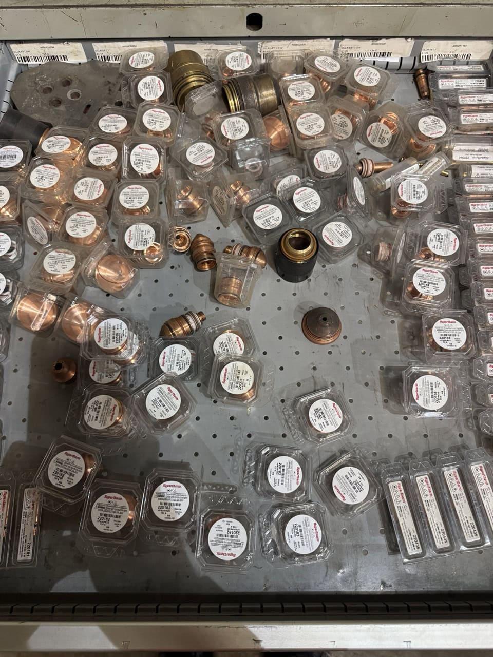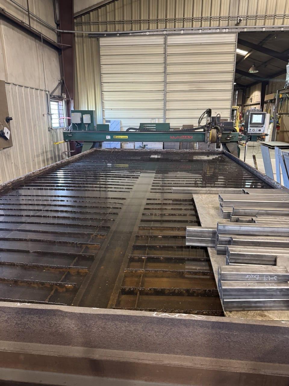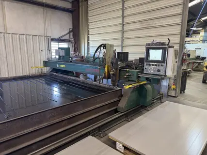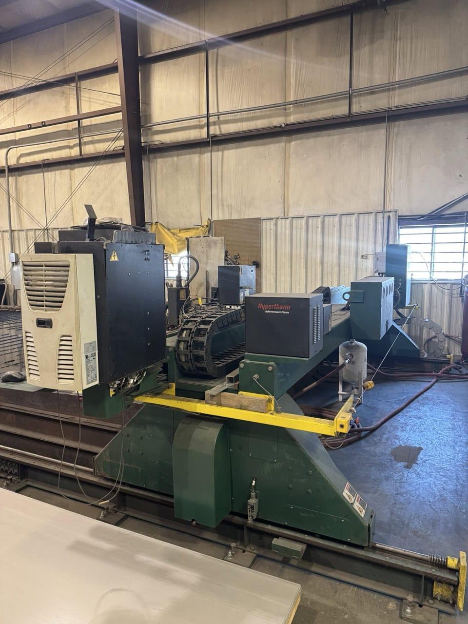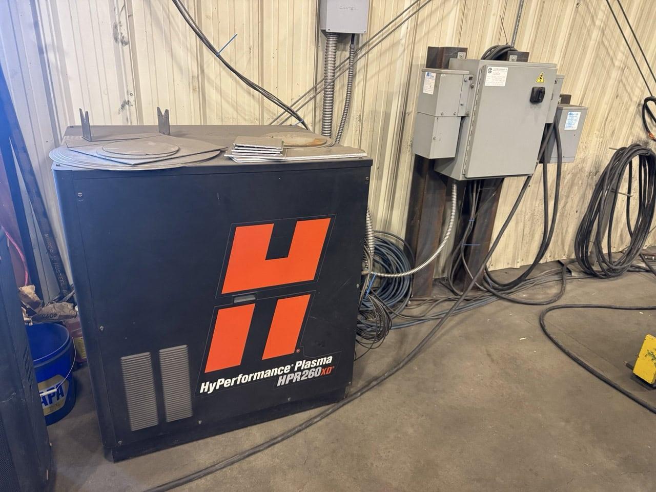 All specifications are assumed to be correct but must be confirmed by the purchasing entity.,Hypertherm HPR260XD specs: Mild steel Dross free: (1-1/2″) Production pierce: (1-1/2″) Maximum cutting capacity: (2-1/2″) All specifications are assumed to be correct but must be confirmed by the purchasing entity.,Stainless Production pierce: (1-1/4″) Maximum cutting capacity: (2-1/2″) All specifications are assumed to be correct but must be confirmed by the purchasing entity.,Aluminum Production pierce: (1″) Maximum cutting capacity: (2″) All specifications are assumed to be correct but must be confirmed by the purchasing entity.,Output voltage: 175 VDC Output current: 260 A All specifications are assumed to be correct but must be confirmed by the purchasing entity.,Control Station All specifications are assumed to be correct but must be confirmed by the purchasing entity.,Controller: Automation CNC controller Software: BurnMachine and CadNesting All specifications are assumed to be correct but must be confirmed by the purchasing entity.,Size: The gantry: 6’ H x 18’ 6″ W The two rails: 8” H x 30’ 1″ L The power unit: 2’ 9″ W x 3’ 9” L x 3’ 10” H All specifications are assumed to be correct but must be confirmed by the purchasing entity.,Control Station located on articulating arm that can be moved according to operator preference. All specifications are assumed to be correct but must be confirmed by the purchasing entity.,Includes all consumables on hand at time of sale All specifications are assumed to be correct but must be confirmed by the purchasing entity. |