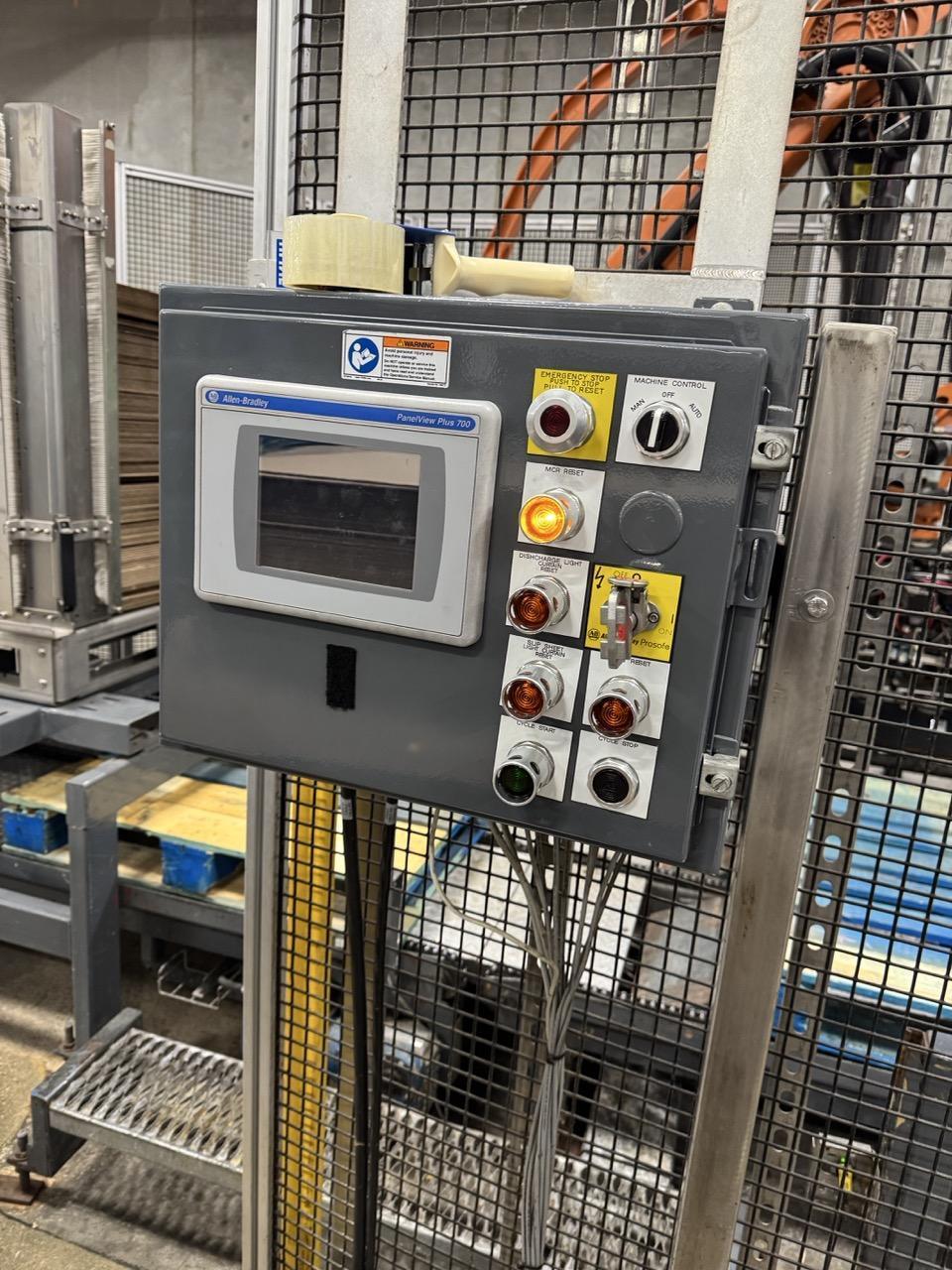 All specifications are assumed to be correct but must be confirmed by the purchasing entity.,Pearson Packaging Systems CE35 Box Erector All specifications are assumed to be correct but must be confirmed by the purchasing entity.,Kuka KR 180-2 PA Robot All specifications are assumed to be correct but must be confirmed by the purchasing entity.,M.J. Maillis WCA-SMART Palletizer All specifications are assumed to be correct but must be confirmed by the purchasing entity.,Pace Packaging M 600 Unscrambler with Hopper All specifications are assumed to be correct but must be confirmed by the purchasing entity. |