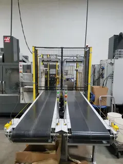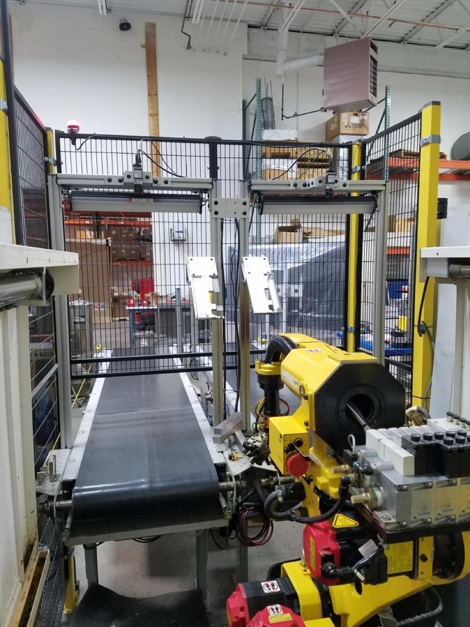 All specifications are assumed to be correct but must be confirmed by the purchasing entity.,Payload: 12 kg H-Reach: 1420 mm Repeatability: ±0.08 mm Robot Mass: 130 kg Axes: 6 Structure: Articulated Mounting: Floor, Inverted, Angle All specifications are assumed to be correct but must be confirmed by the purchasing entity.,RoboFlex CS (Conveyor System) All specifications are assumed to be correct but must be confirmed by the purchasing entity.,1.5’ Wide 8.5’ Long 40” High Slider Bed Conveyor Center Drive Unit Center Tracking Rib On Belt 2HP Inverter Duty Rated Drive Motor And Gearbox 60 FPM Single Belt Speed E-Stop Tether Operated Safety Disconnect Switch Photo Electric Eye At End To Stop Part Loading When Full Manual, Auto And Jog Conveyor Control Buttons All specifications are assumed to be correct but must be confirmed by the purchasing entity.,Additional Cell Details Upon Request All specifications are assumed to be correct but must be confirmed by the purchasing entity. |
