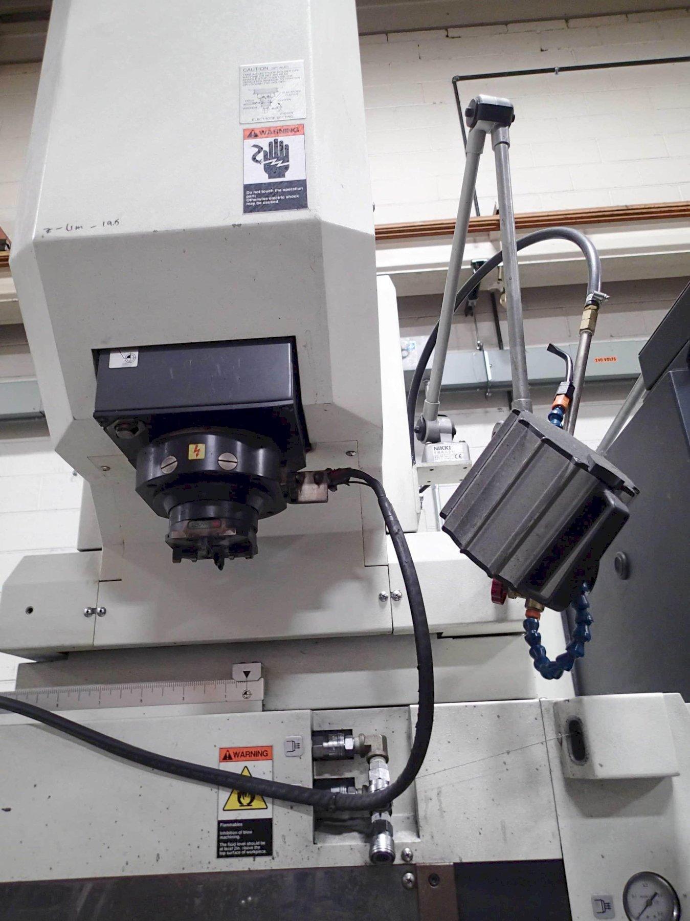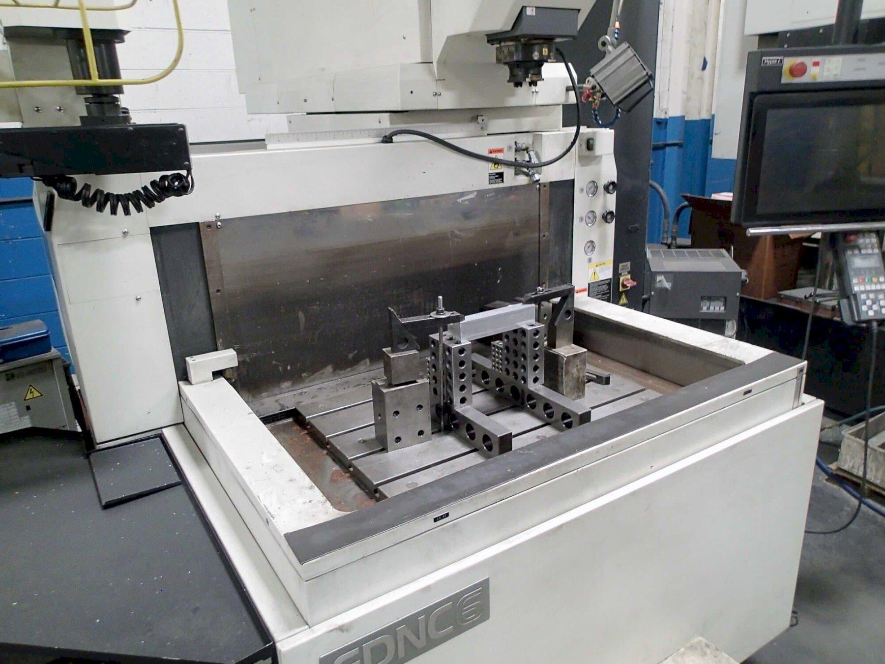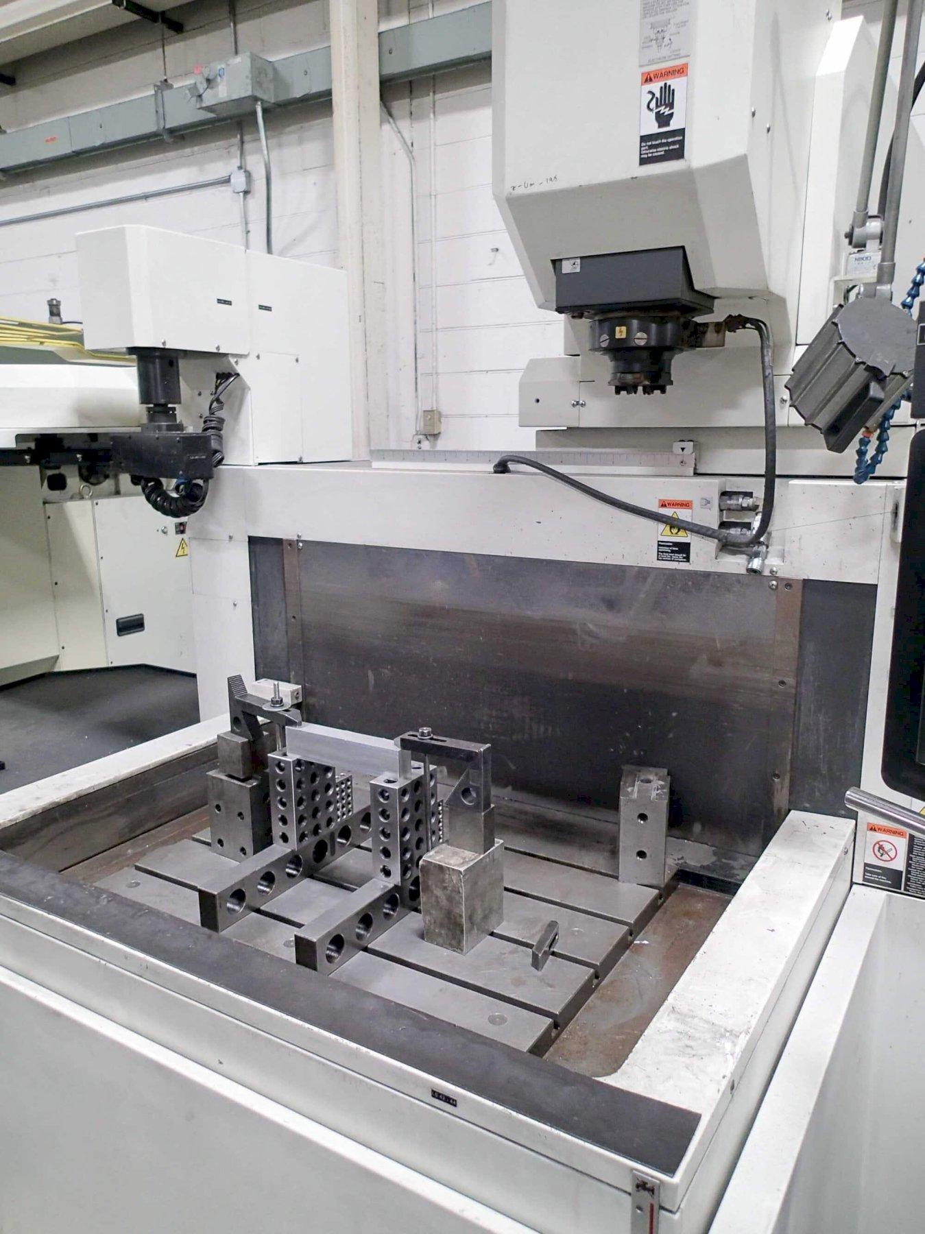 All specifications are assumed to be correct but must be confirmed by the purchasing entity.,Max electrode diameter: 3.15″ / 7″ Max electrode length: 10.2″ Max electrode weight: 220 lbs. Max fluid level: 15.7″ Max workpiece weight: 3300 lbs. Platen to table: 27.5″ Power supply: 60 Amps (80 Peak) Rapid traverse rates: 78 IPM All specifications are assumed to be correct but must be confirmed by the purchasing entity.,EQUIPPED WITH: Makino Hyper I CNC Control MR Head with Full C-Axis Erowa Auto Chuck 16 Tool Changer Remote Jog Handle Filtration System Chiller Unit Available Erowa Tooling All specifications are assumed to be correct but must be confirmed by the purchasing entity.,Approx 8,600 Hours All specifications are assumed to be correct but must be confirmed by the purchasing entity. |