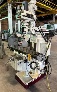 MODEL: Ultima EVS-3VKH Ultima SERIAL NUMBER: 98020220 GENERAL SPECIFICATIONS Table Size: 10" x 50" Longitudinal Travel: 34" Cross Travel: 16" Vertical Knee Travel: 16" Ram Travel: 20" Maximum Weight Of Workpiece: 850 Lbs. Turret Rotation: 360 Degrees Spindle Speeds, Variable: 60 to 4200 RPM Spindle Taper: R-8 Quill Travel: 5" Power Quill Feeds: (3) .0015, .003, .006 EQUIPPED WITH 3 HP Spindle Motor, 440/60/3 Electronic Variable Speed Fagor Two Axis Digital Readout Kurt Power Draw Bar ALS-500P Power Feed X-Axis One-Shot Lubrication Approximate Weight: 3500 Lbs. Shipping Dimensions: F.O.B. Cincinnati, Ohio ALL SPECIFICATIONS SUBJECT TO VERIFICATION BY PURCHASER |