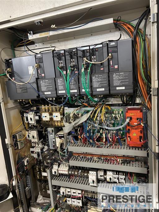 Maximum Swing 33.07" Maximum Machining Diameter 22.84" Maximum Turning Length 118.11" X-Axis Travel 13.38" Z-Axis Travel 123.81" Spindle Bore 7.24" Spindle Speed 2,000 RPM Spindle Motor 50 HP Milling Spindle Speed 4,000 RPM Milling Spindle Motor 10 HP Approximate Dimensions 245" x 110" x 104" Approximate Weight 47,000 Lbs. Equipped With: Mazak Matrix Nexus 2 CNC Control 19.25" Chuck 12-Station Auto Indexing Turret Milling & C-Axis Y-Axis Machine Prepped for 1000 PSI Auto Front Door Open/Close SMW Steady Rest Automatic Tool Eye Tailstock Chip Conveyor HOURS: 5,800 NOTE: Inspect in Plant Under Power |
