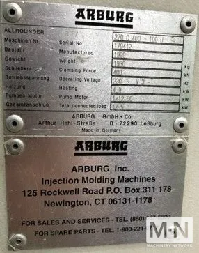 OverviewDescription40 TON 2.3 OZ ARBURG MODEL 270C-400-100U LSR SILICONE INJECTION MOLDING MACHINE MFG 1999 230 VOLT SELOGICA CONTROL