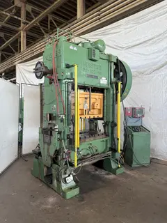 MODEL...............: P2-100-48 TONNAGE.............: 100 STROKE LENGTH.......: 4" SLIDE ADJUSTMENT....: 4" SHUT HEIGHT.........: 20" SPM.................: 100-200 VARIABLE CLUTCH AIR PRESSURE.: 60 LBS. BED SIZE............: 48" X 31" T SLOTTED RAM.......: YES T SLOTTED BOLSTER...: YES MINSTER CLUTCH......: YES VOLTAGE.............: 240 EQUIPPED WITH: WINTRISS SMARTPAC2 PRESS AUTOMATION SYSTEM COMPLETE AND FUNCTIONING LIGHT CURTAINS VIBRO DYNAMIC ISOLATION PADS SHUTTLE PRO 100 SYSTEM |