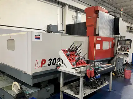 X-Axis 118.11" Y-Axis Travel 82.67" Z-Axis Travel 29.92" Distance Between Coilumns 90.55" Table Size 118" x 79" Spindle Speed 8,000 RPM Spindle Taper CAT 50 Spindle Motor 30 HP / 35 HP Tools 32 ATC Table Load Capacity 22,000 lbs. Electrics 220 V/ 60 KVA Equipped With: FANUC 18i-MB CNC Control 32-Station Automatic Tool Changer Coolant Through Spindle Chip Conveyor |