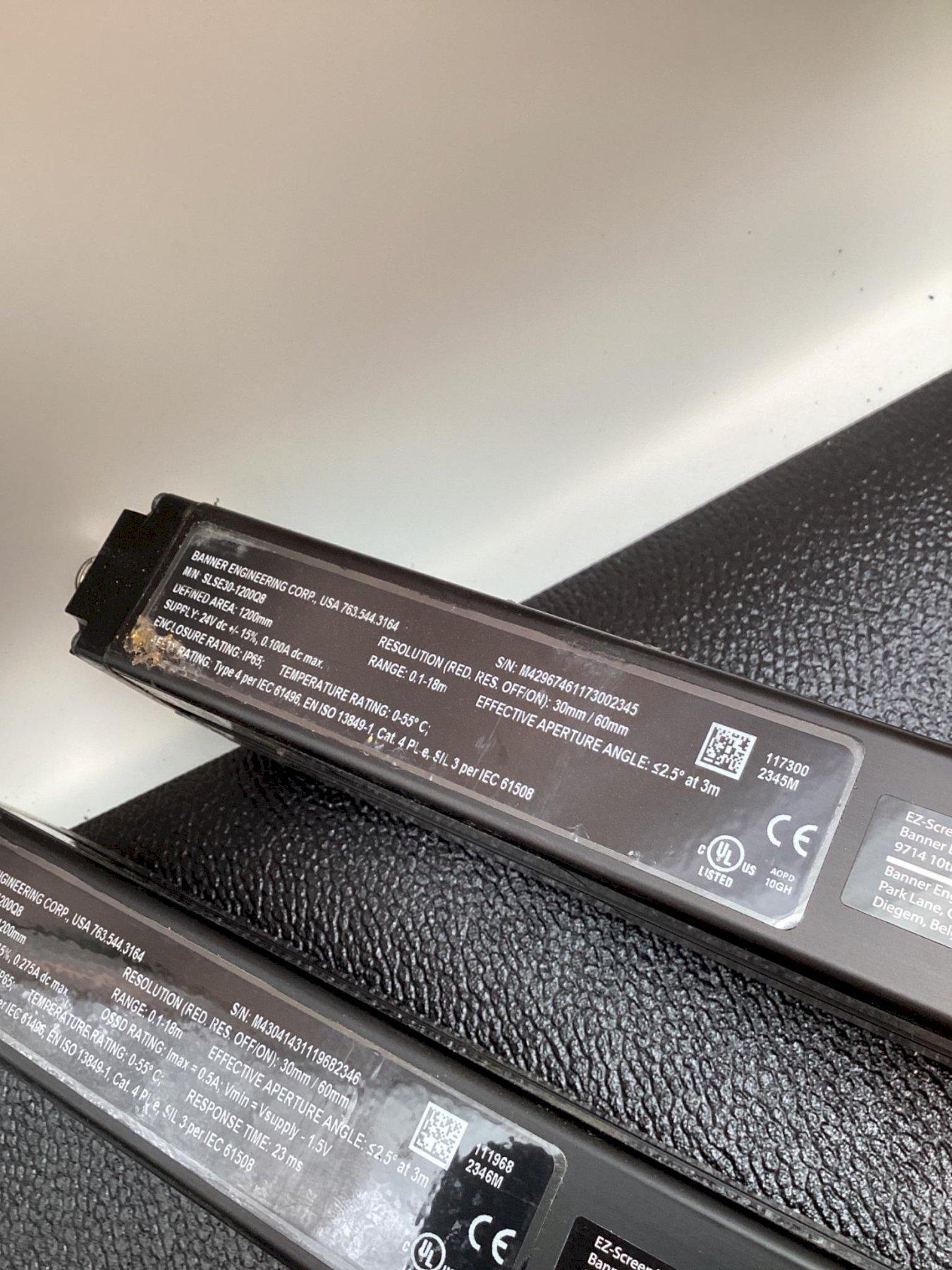 OverviewThis listing is for a USED Banner Engineering safety light curtain set: – Model SLSR30‑1200Q8 (receiver) and SLSE30‑1200Q8 (emitter) Part No: SLSR30‑1200Q8 + SLSE30‑1200Q8 See photos of all components and labels carefully. |