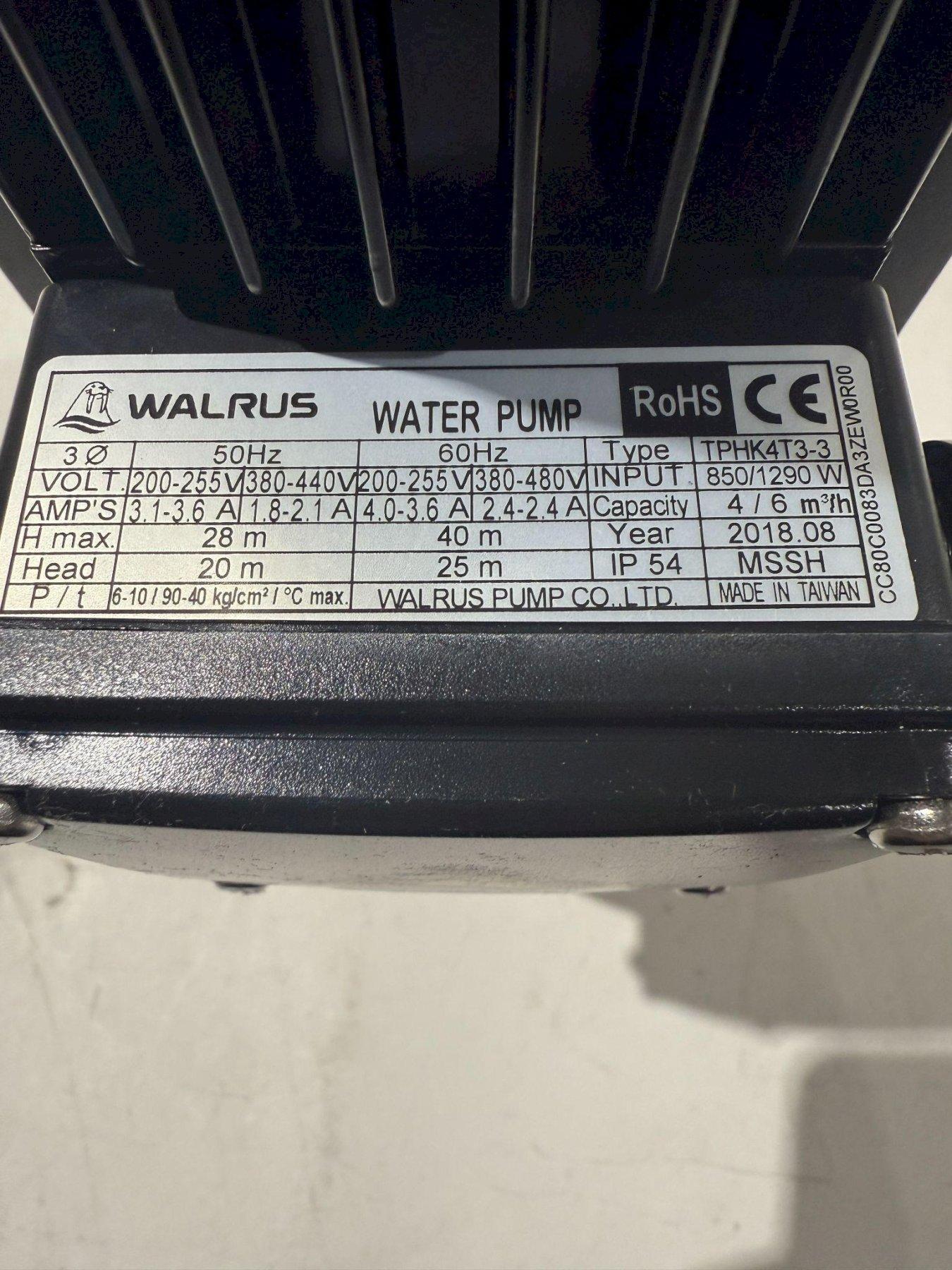 OverviewThe Walrus TPHK4T3-3 Coolant Pump is a used industrial-grade, multi-stage centrifugal pump designed for delivering coolant or cutting fluid in machine tool applications. Known for its reliable performance and durable construction, the TPHK4T3-3 model is suitable for continuous operation in CNC machines, lathes, and milling centers. Built by Walrus Pump Co., this 3-phase pump offers high head pressure and stable flow, making it ideal for precision cooling and lubrication tasks in demanding shop environments. Product Specifications