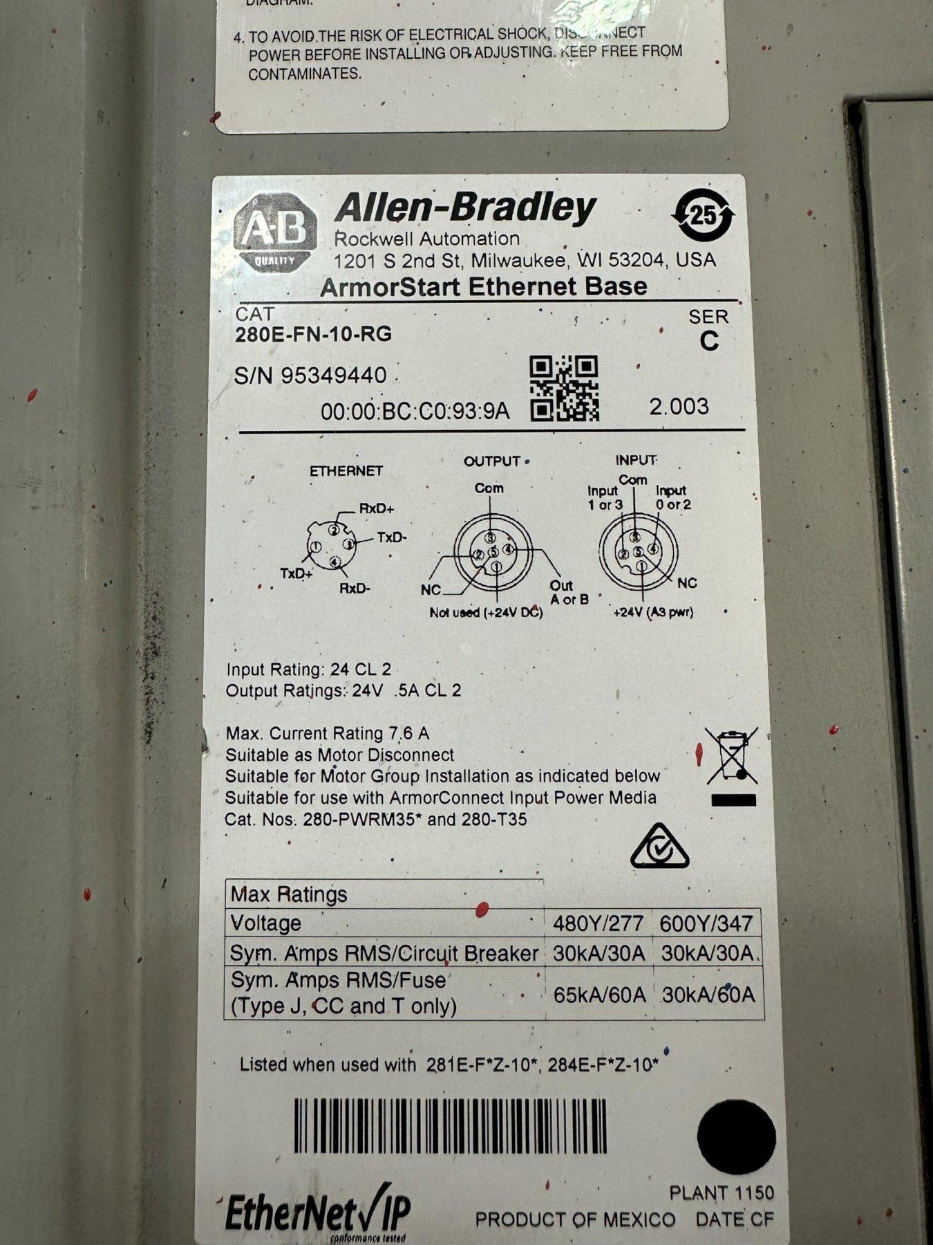 OverviewALLEN BRADLEY 280E-FN-10-RG with 284E-FVD2P3Z-10-RRG-SBG-DB1-EMI used Armor Start, a reliable PLC Ethernet & Communication unit in good condition. Ideal for industrial automation systems. Model: 284E-FVD2P3Z-10-RRG-SBG-DB1-EMI. |